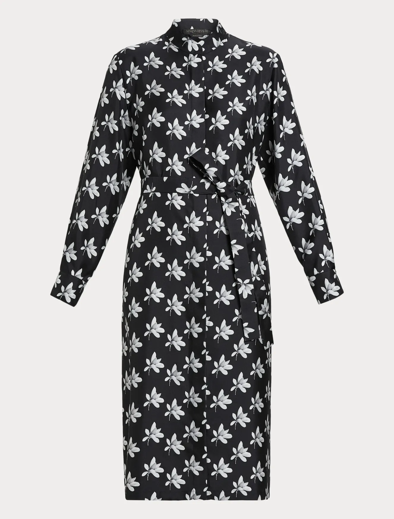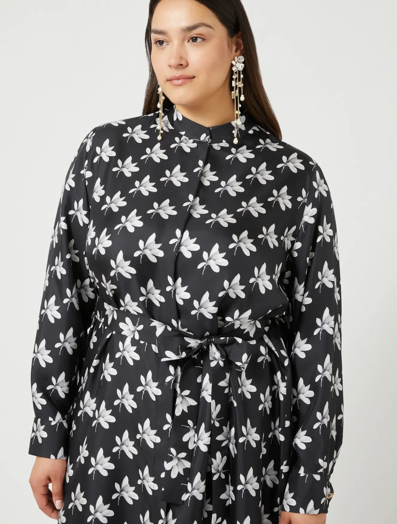 Eleganza essenziale per l’abito chemisier in twill di pura seta con stampa esclusiva. Lo puoi regolare in vita come vuoi con la cintura in coordinato.Il capo fa parte della main collection Marina Rinaldi.