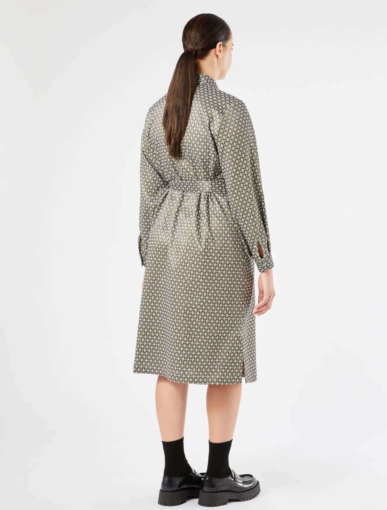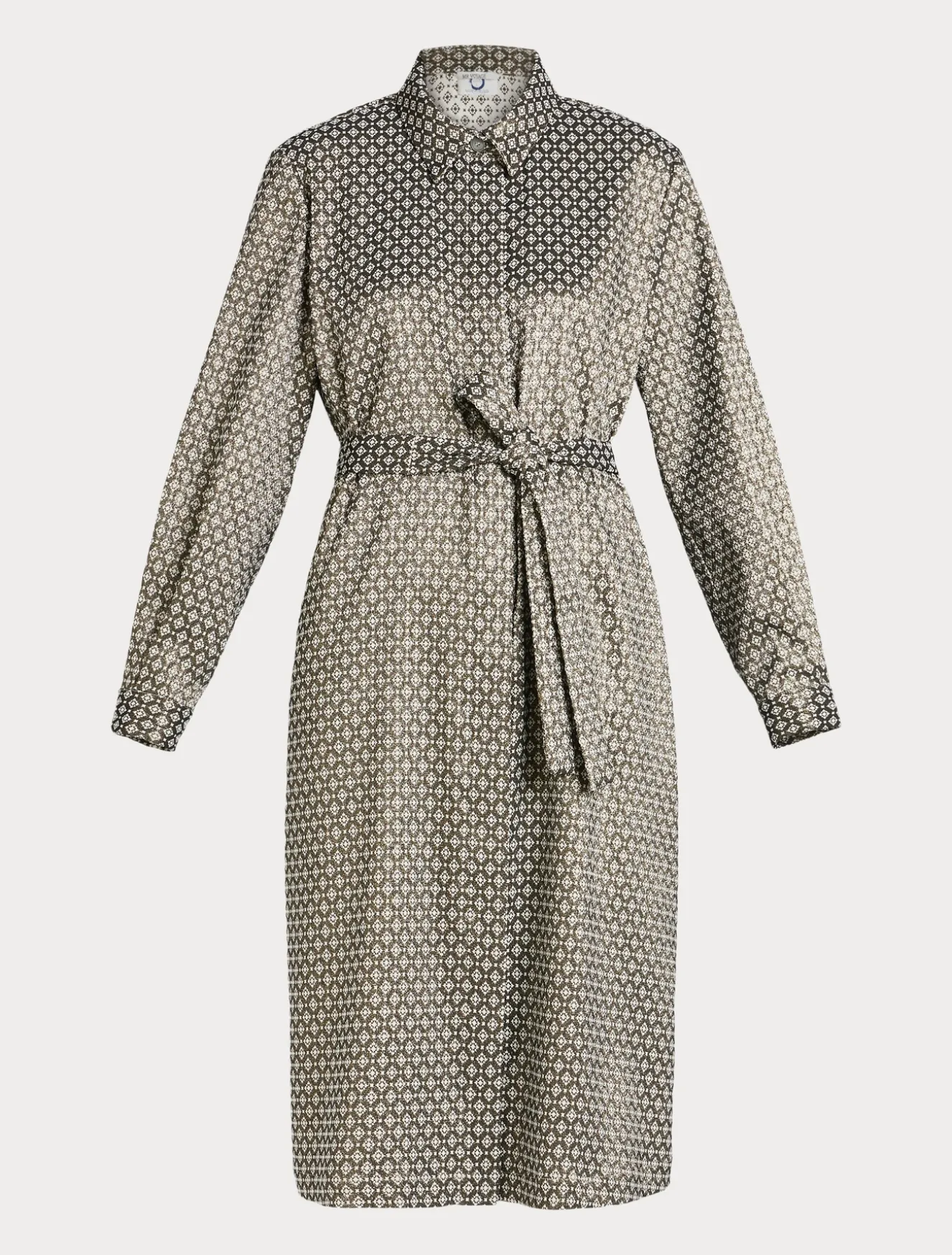 Linea versatile per l’abito chemisier in tessuto jacquard lurex stretch. Lo puoi indossare come abito o come spolverino in look a strati.Il capo fa parte della collezione Voyage.