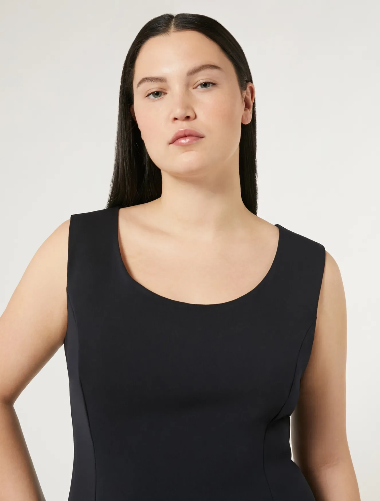 Fascino intramontabile per l’abito in cady dalla linea a tubino, con scollo rotondo e il dettaglio delle maniche attaccabili per una nota di stile in più sul look.Il capo fa parte della collezione Persona by Marina Rinaldi.