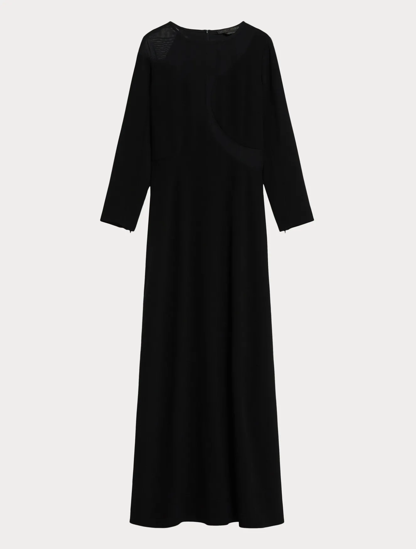L’abito lungo in cady triacetato comfort decorato con intarsio in tulle in tinta che attraversa il corpino creando un motivo di forme arrotondate. Il tessuto ha una mano fluida, contemporanea e versatile, di facile manutenzione e che non si stropiccia. Un modello che punta sulla ricercatezza dei dettagli e non passa inosservato.Il capo fa parte della collezione Elegante.
