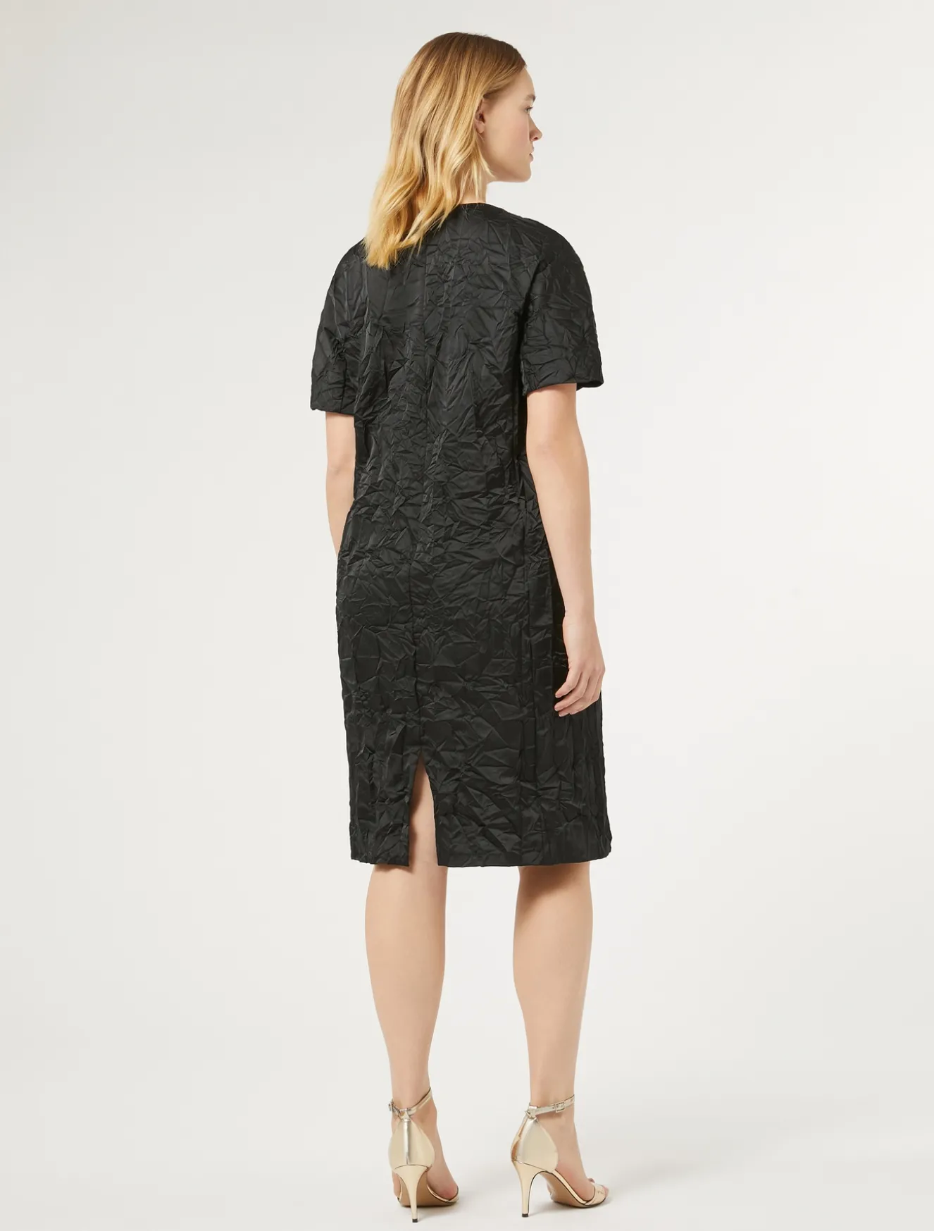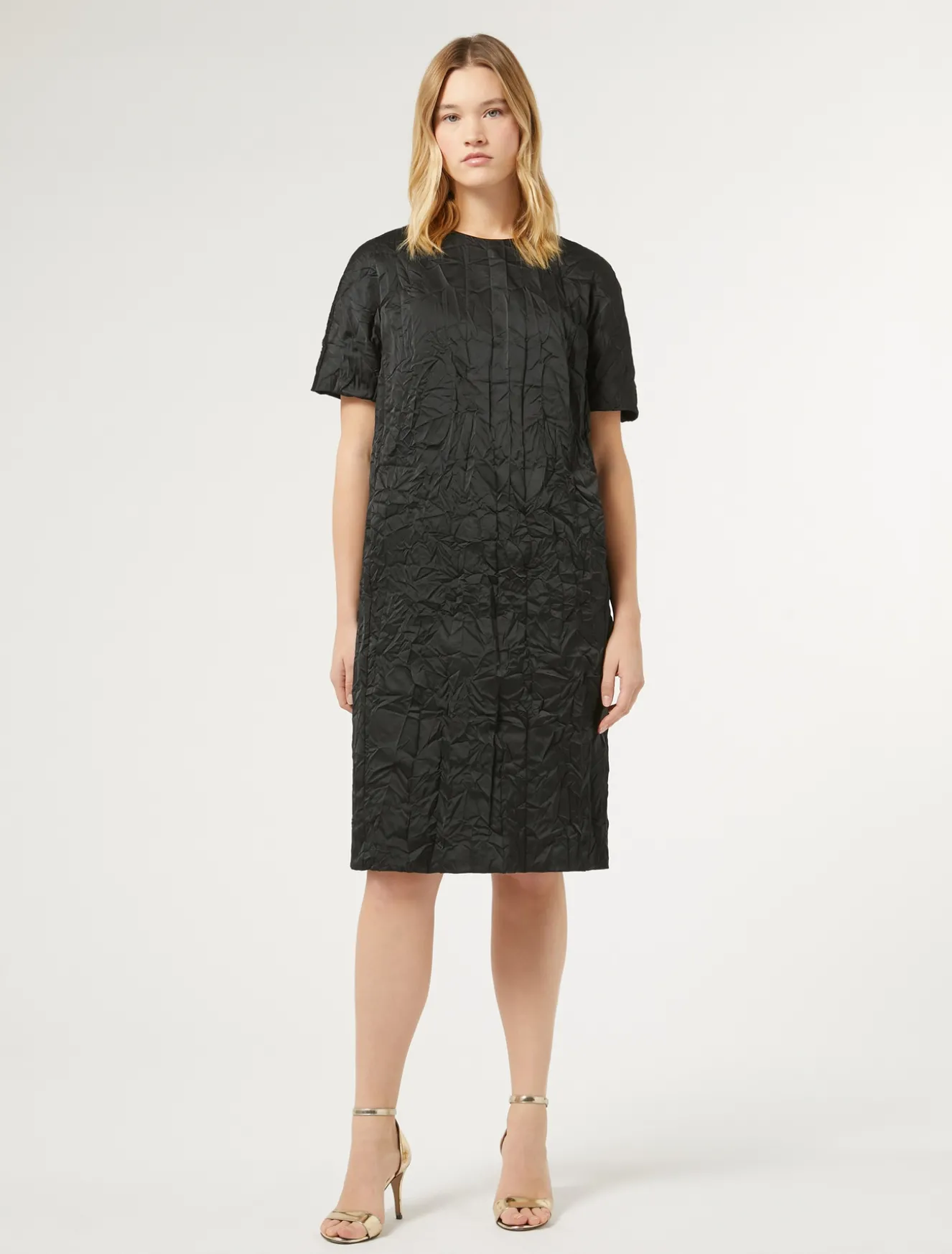 Texture ricercata per l’abito in duchesse effetto stropicciato, dalla linea dritta. Design essenziale e raffinato perfetto per un’occasione speciale.Il capo fa parte della main collection Marina Rinaldi.