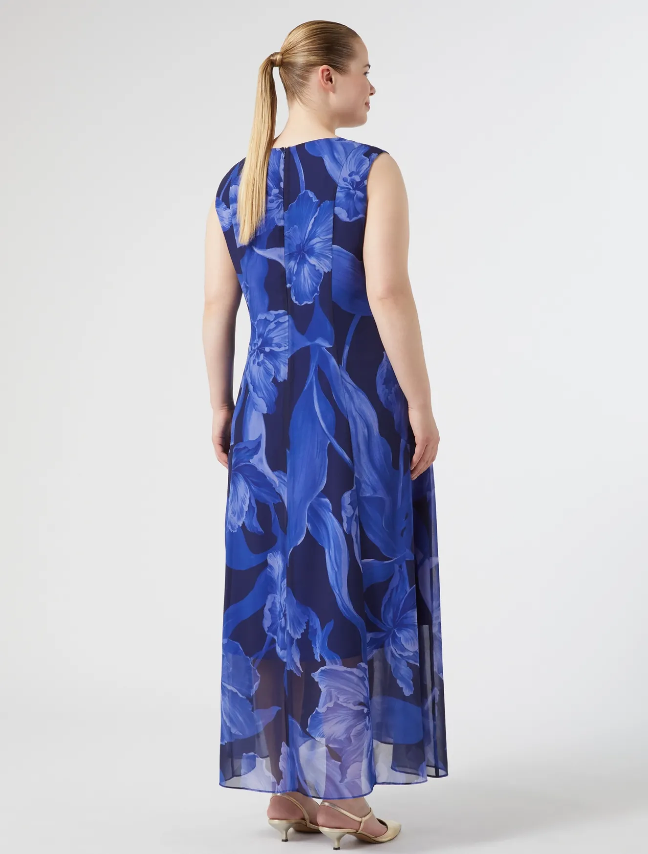 Stampa in esclusiva per l’abito in georgette, dalla linea scivolata. Puoi applicare le maniche corte in dotazione con un semplice intervento di sartoria dedicato.