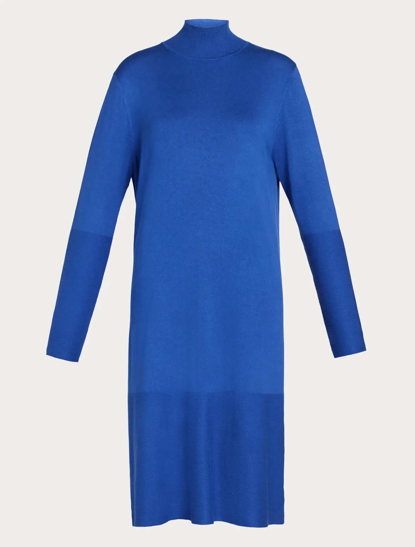 Comfort e stile per l’abito in viscosa stretch con collo alto e maniche lunghe. La lavorazione a punto rasato caratterizza la texture.Il capo fa parte della collezione Persona by Marina Rinaldi.