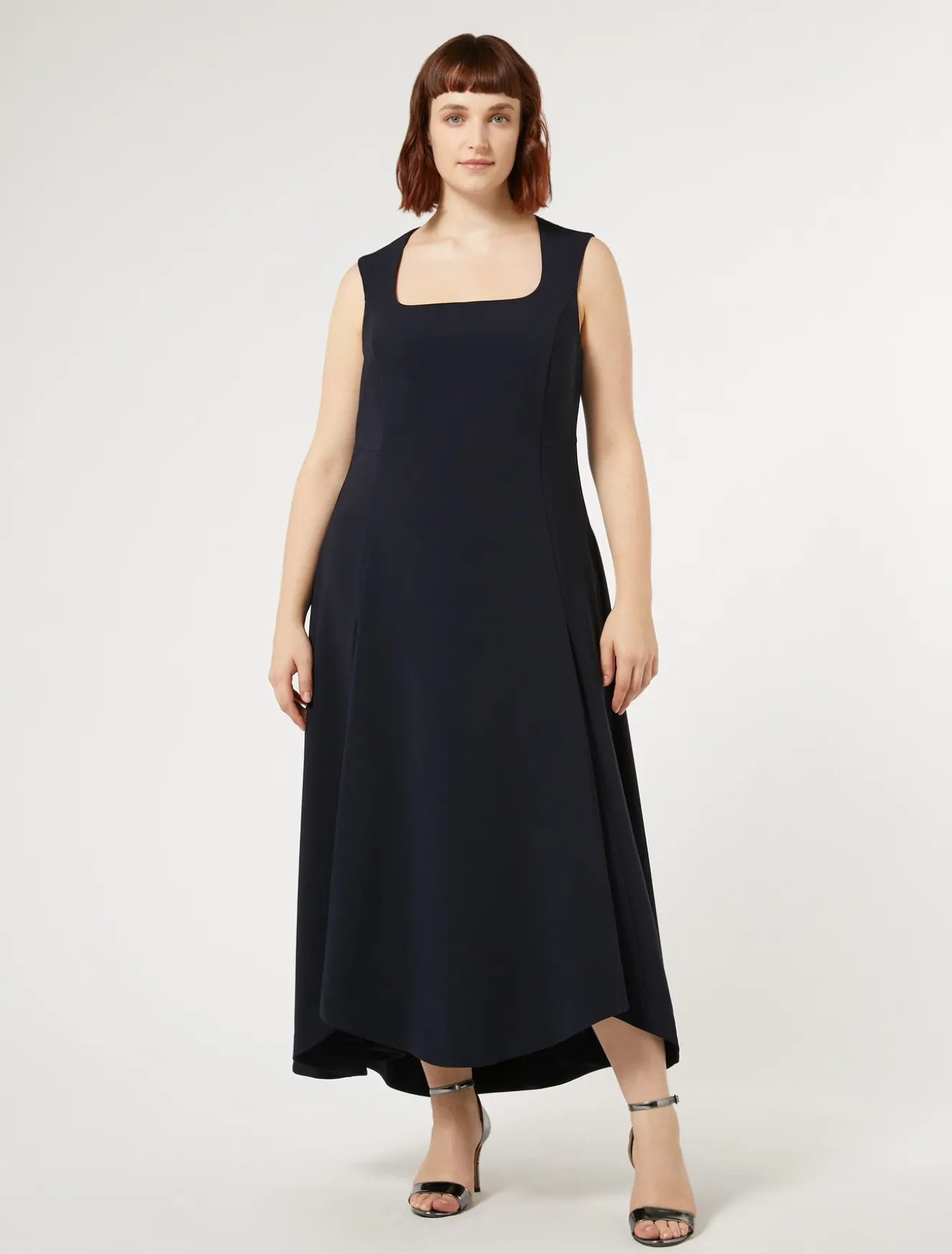 Bustino aderente e gonna a petalo per l’abito lungo in cady triacetato, un tessuto fluido, di facile manutenzione e anti-imperfezioni. Puoi applicare al modello le maniche lunghe con un semplice intervento di sartoria.Il capo fa parte della collezione Elegante.