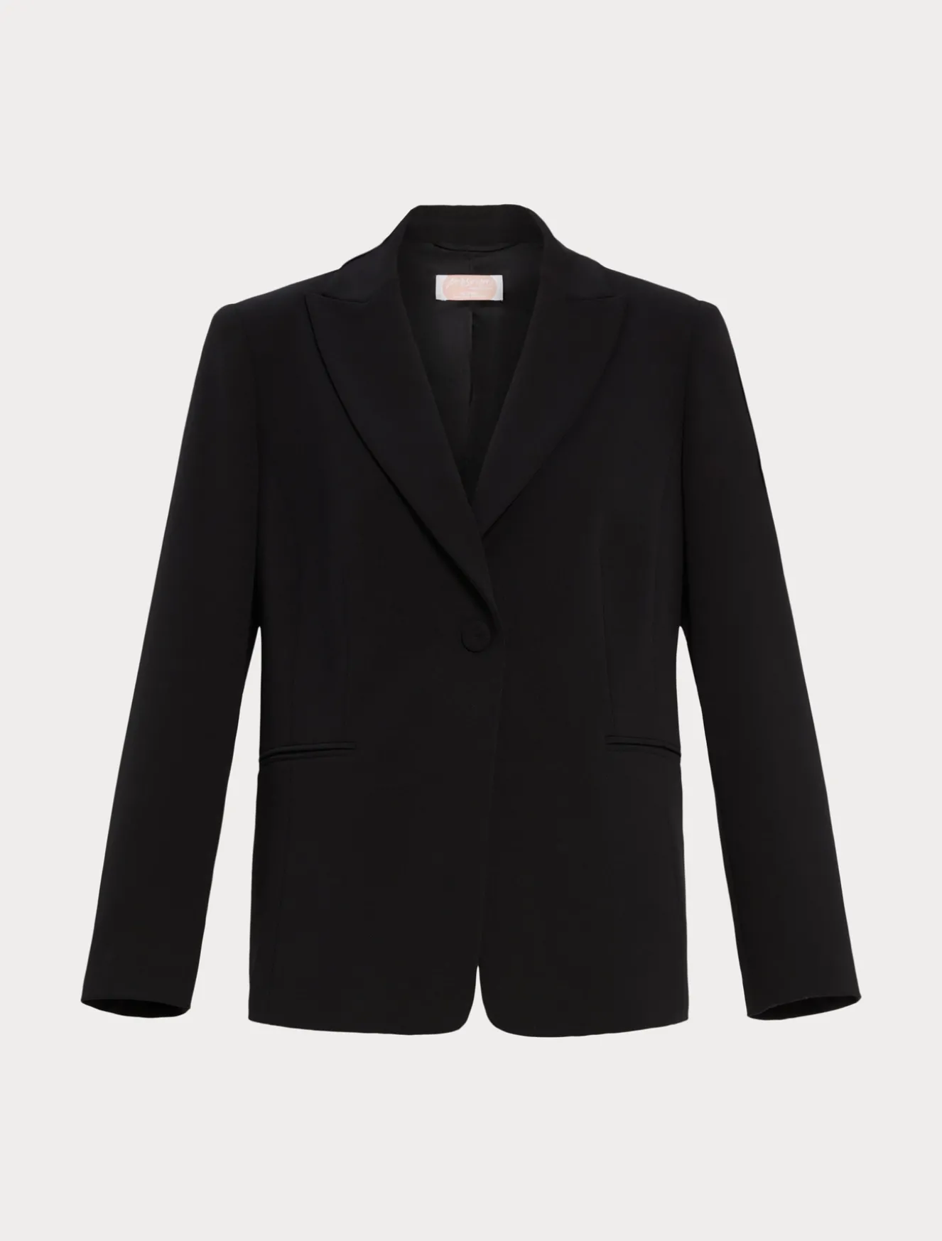 Linee femminili per il blazer in jersey stretch con rever a lancia, maniche lunghe e tasche a filetto. La chiusura monopetto aggiunge una nota distinta.Il capo fa parte della collezione N.O.W.