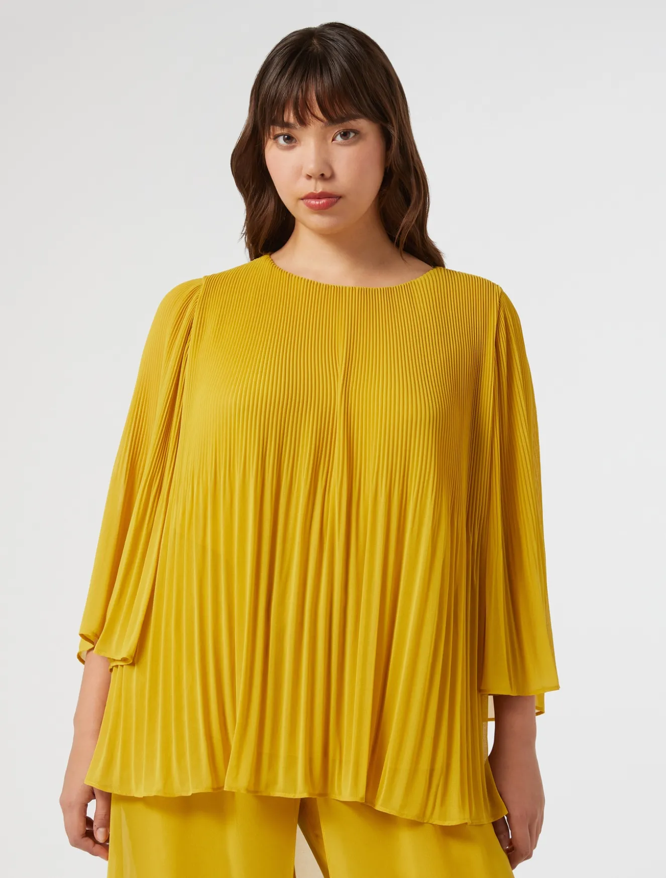 Non passerà inosservata la blusa in georgette plissé in dégradé, dalla linea svasata. Ideale se vuoi dare una nota grafica e femminile al tuo stile.