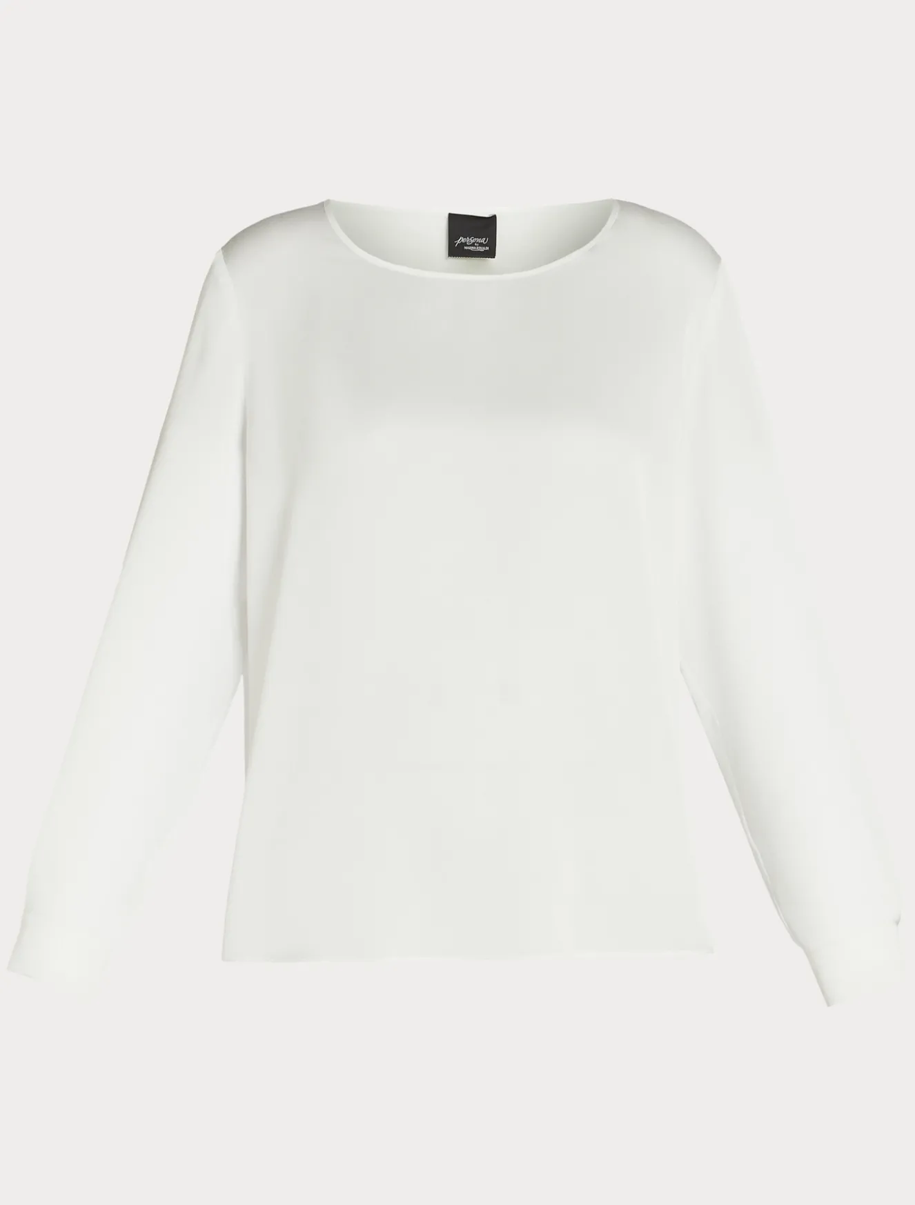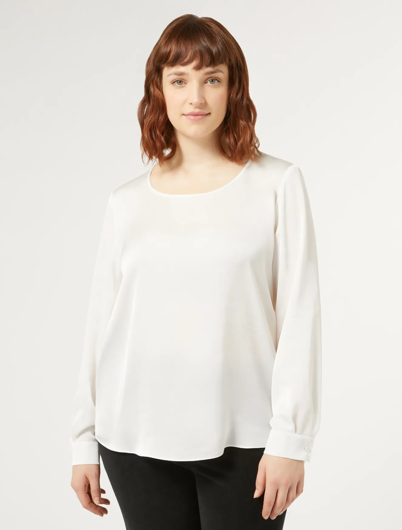 Semplice e sofisticata la blusa in raso con scollo tondo e maniche lunghe rifinite da polsi e bottoncini.Il capo fa parte della collezione Persona by Marina Rinaldi.