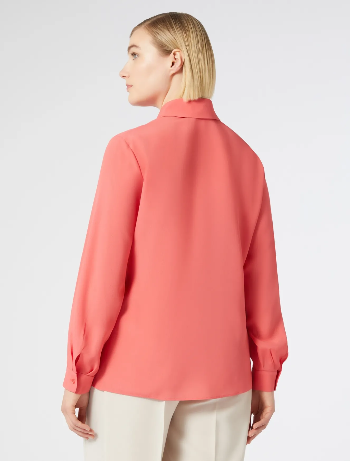 Eleganza essenziale da indossare ovunque per la camicia in crêpe de Chine di misto seta. Perfetta come key-item del guardaroba. Il tessuto principale contiene materie prime derivanti dalla cellulosa del legno, fibra ricavata nel rispetto del patrimonio forestale.