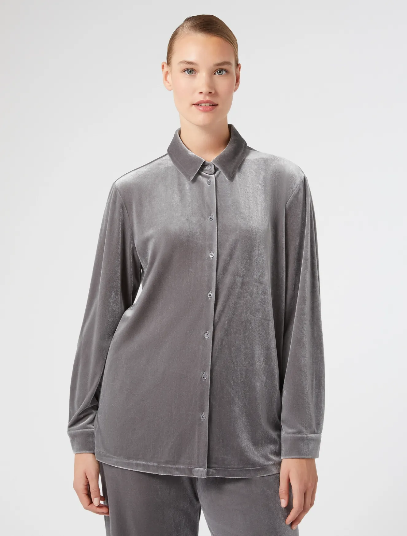 Eleva i tuoi look easywear con la camicia in jersey di velluto, dalla linea dritta. Perfetta tutti i giorni, anche in abbinamento ai pantaloni in coordinato.