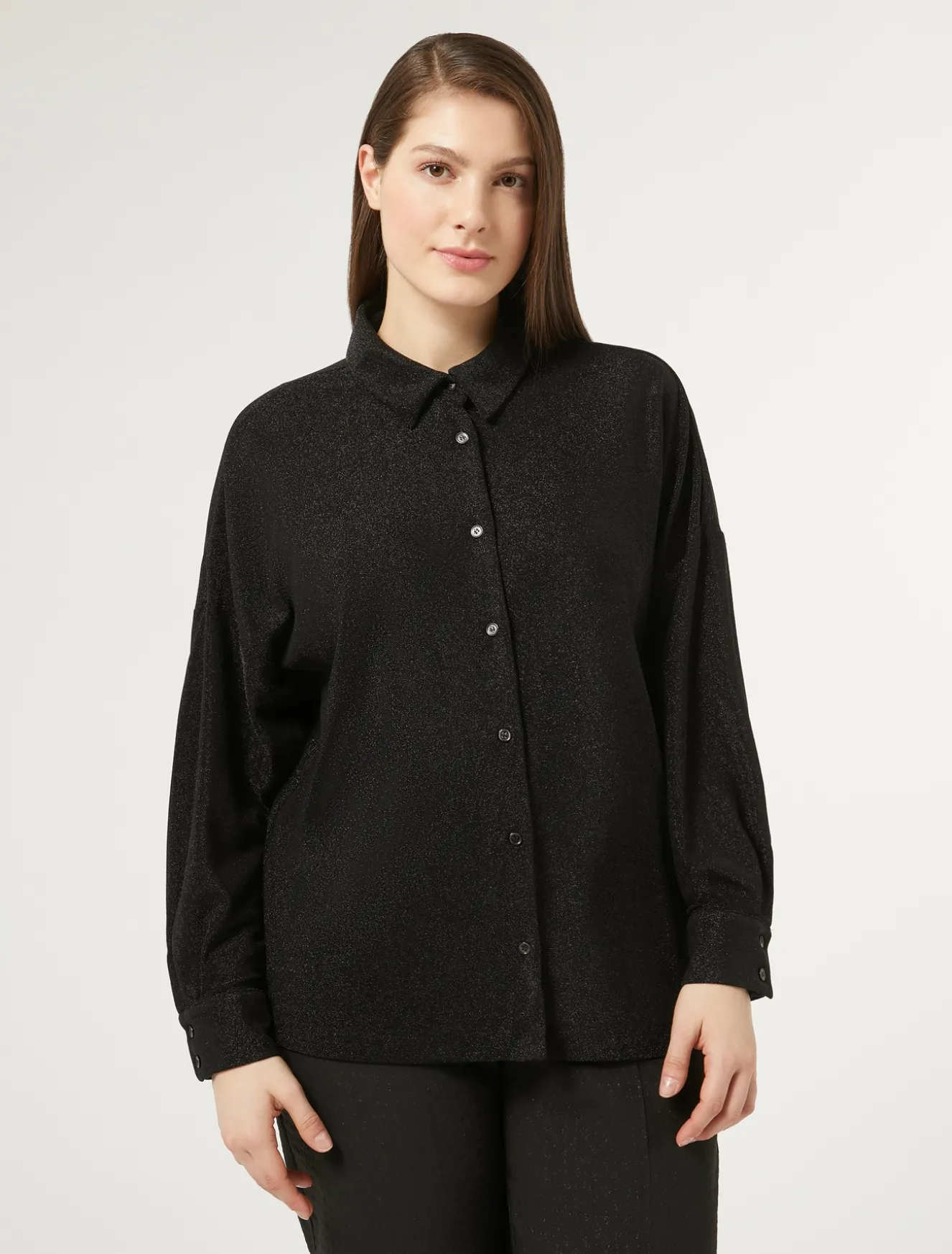 Completa il tuo stile con la camicia in morbido jersey lurex. Carattere inedito per elevare il look in un attimo.Il capo fa parte della collezione Voyage.