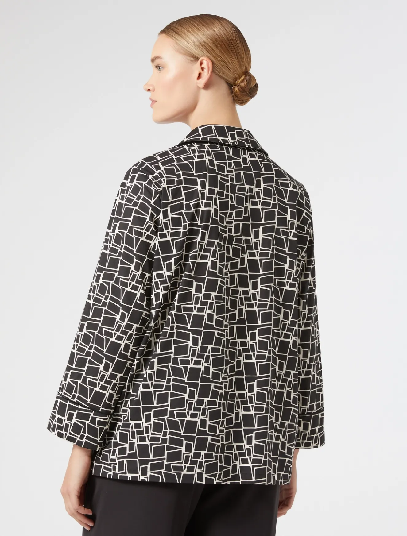 Ispirazione pajamas per la camicia in popeline di puro cotone con stampa esclusiva. È rifinita da piping a contrasto.