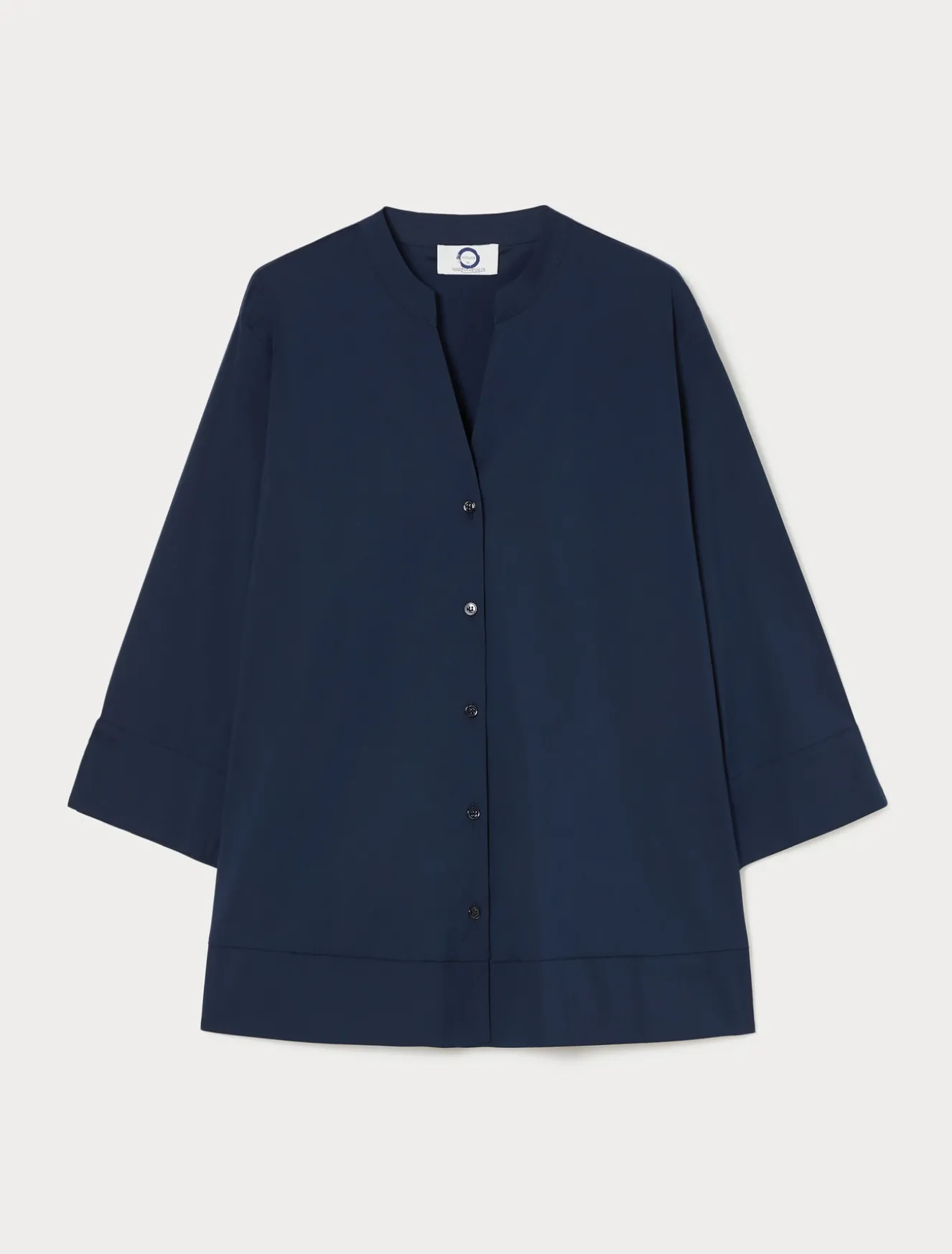Attitudine versatile per la camicia in popeline di cotone e nylon stretch, dalla linea dritta. Un modello confortevole adatto a diverse occasioni d’uso. Il capo fa parte della collezione Voyage.