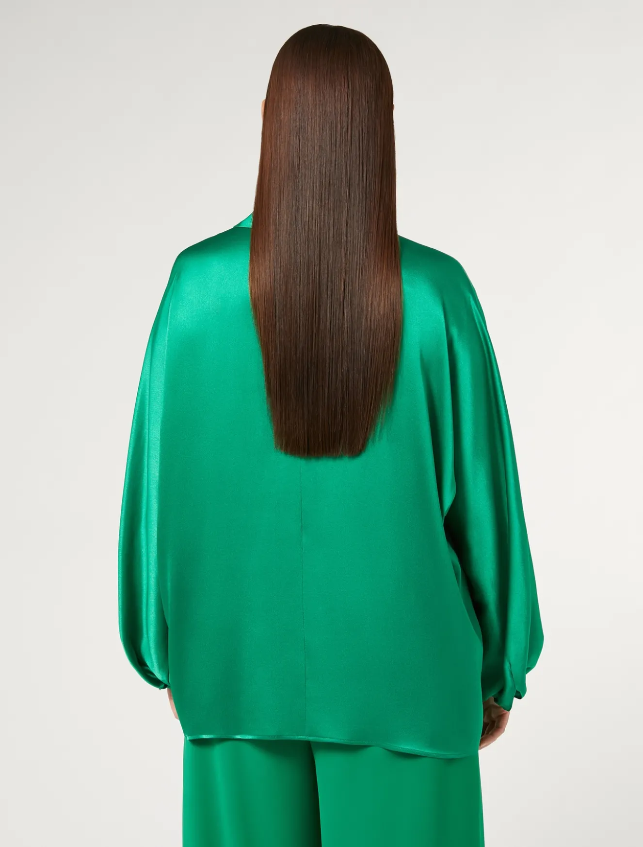 Linea ampia e femminile per la camicia in satin con bottoni gioiello. Ideale per completare le tue mise speciali.Il capo fa parte della collezione Elegante.