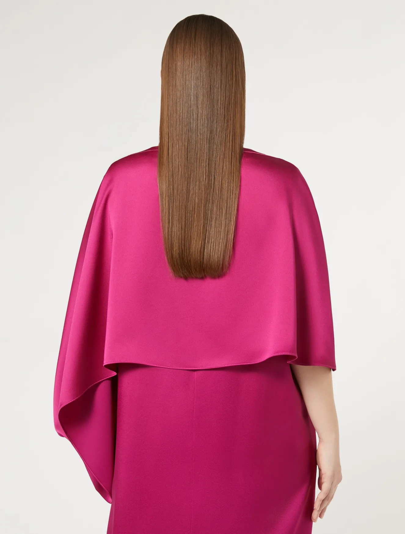 Design asimmetrico per la cappa in crêpe envers satin lucido, con maniche a kimono. Basta indossarla per elevare lo stile in un attimo.Il capo fa parte della collezione Elegante.