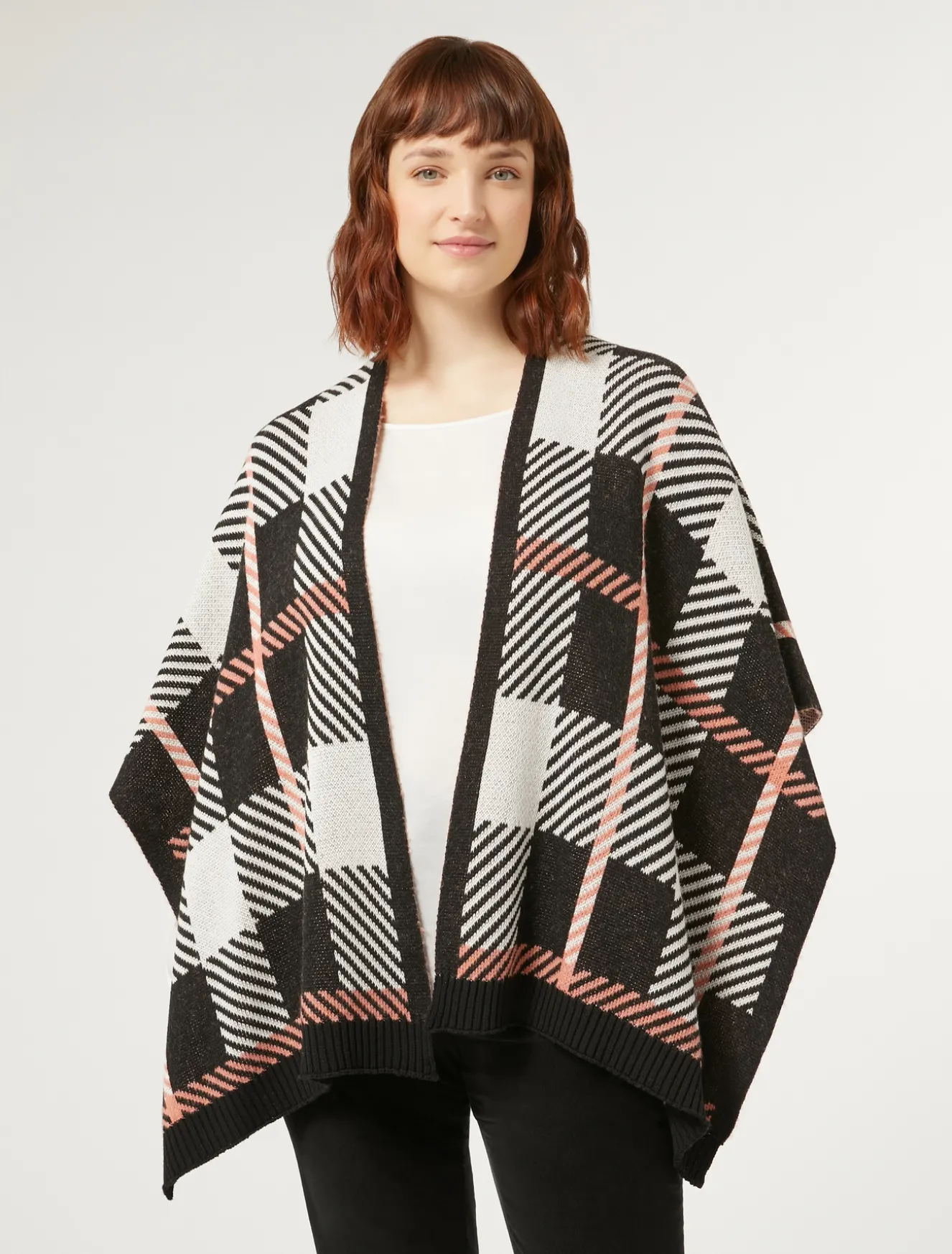Da avere sempre con sé la cappa in misto lana rifinita con lavorazione jacquard piqué. Da indossare sul pullover o sul cappotto.L’accessorio fa parte della collezione Persona by Marina Rinaldi.