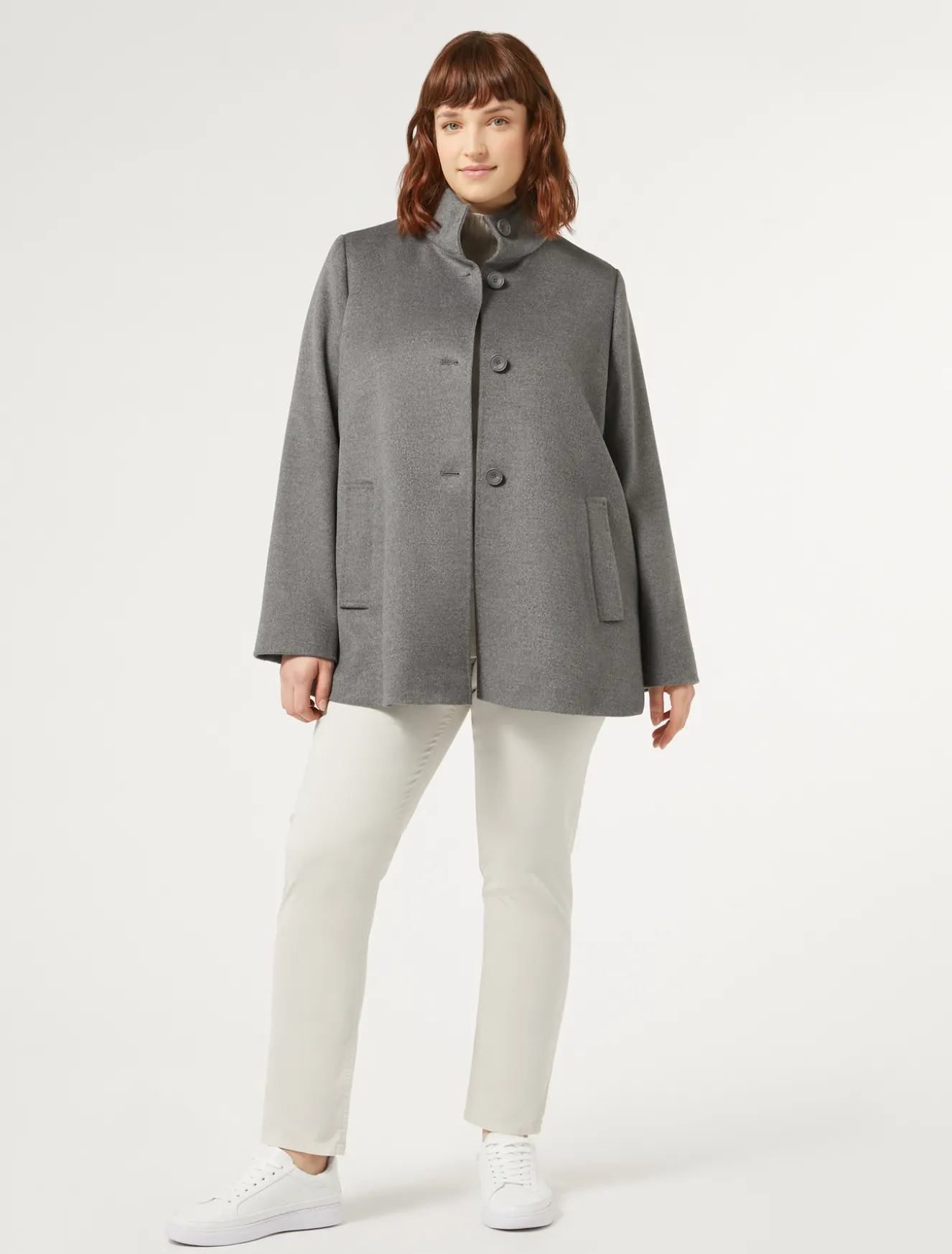 Perfetto per il daily-chic il cappotto in drap di pura lana rifinito da puntino sartoriale cucito a mano. Chiusura sul davanti.ll capo fa parte della collezione Persona by Marina Rinaldi.