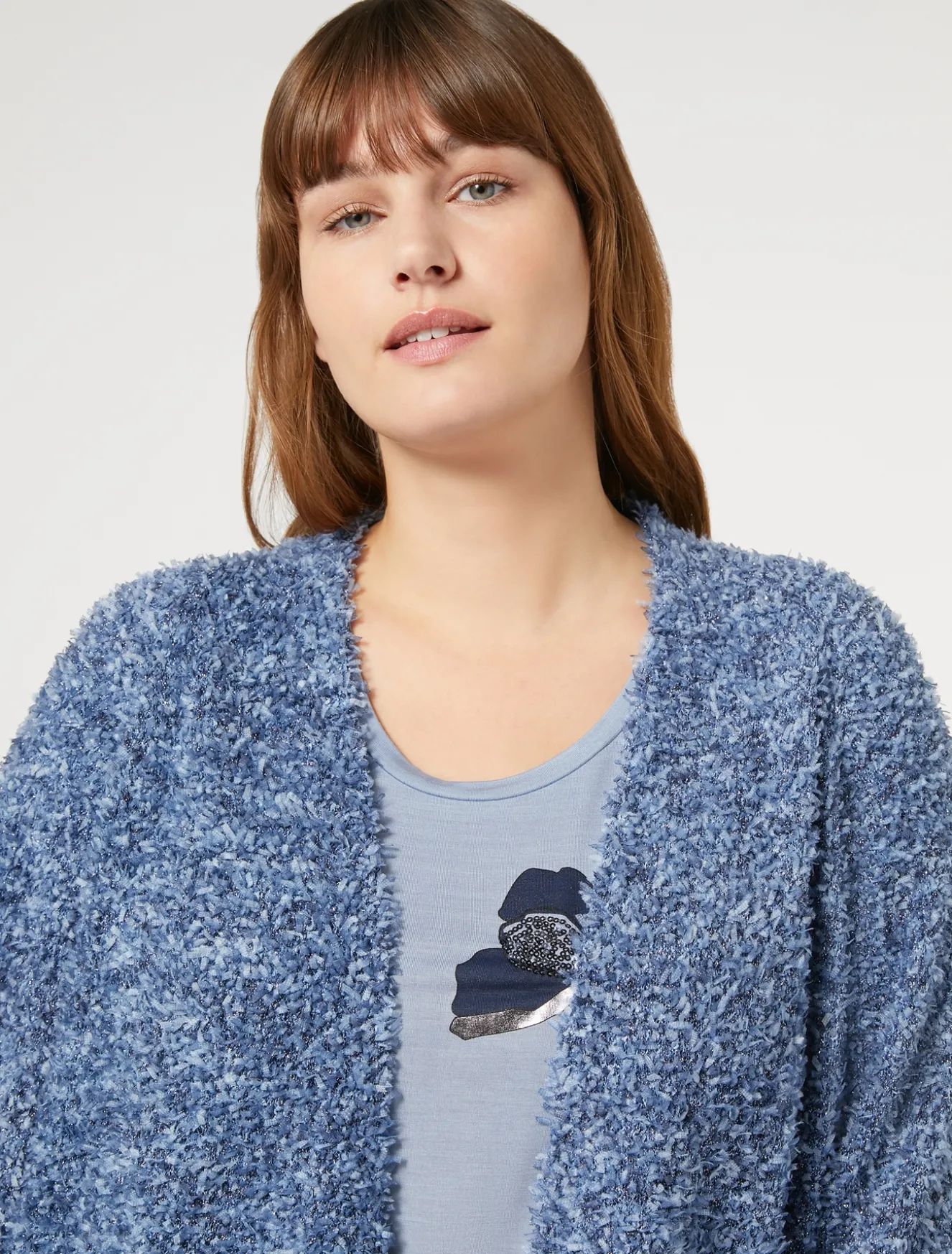 Morbido e ricercato il cardigan in filato lurex, dalla linea dritta. Perfetto per dare movimento allo stile. Il capo fa parte della collezione Voyage.