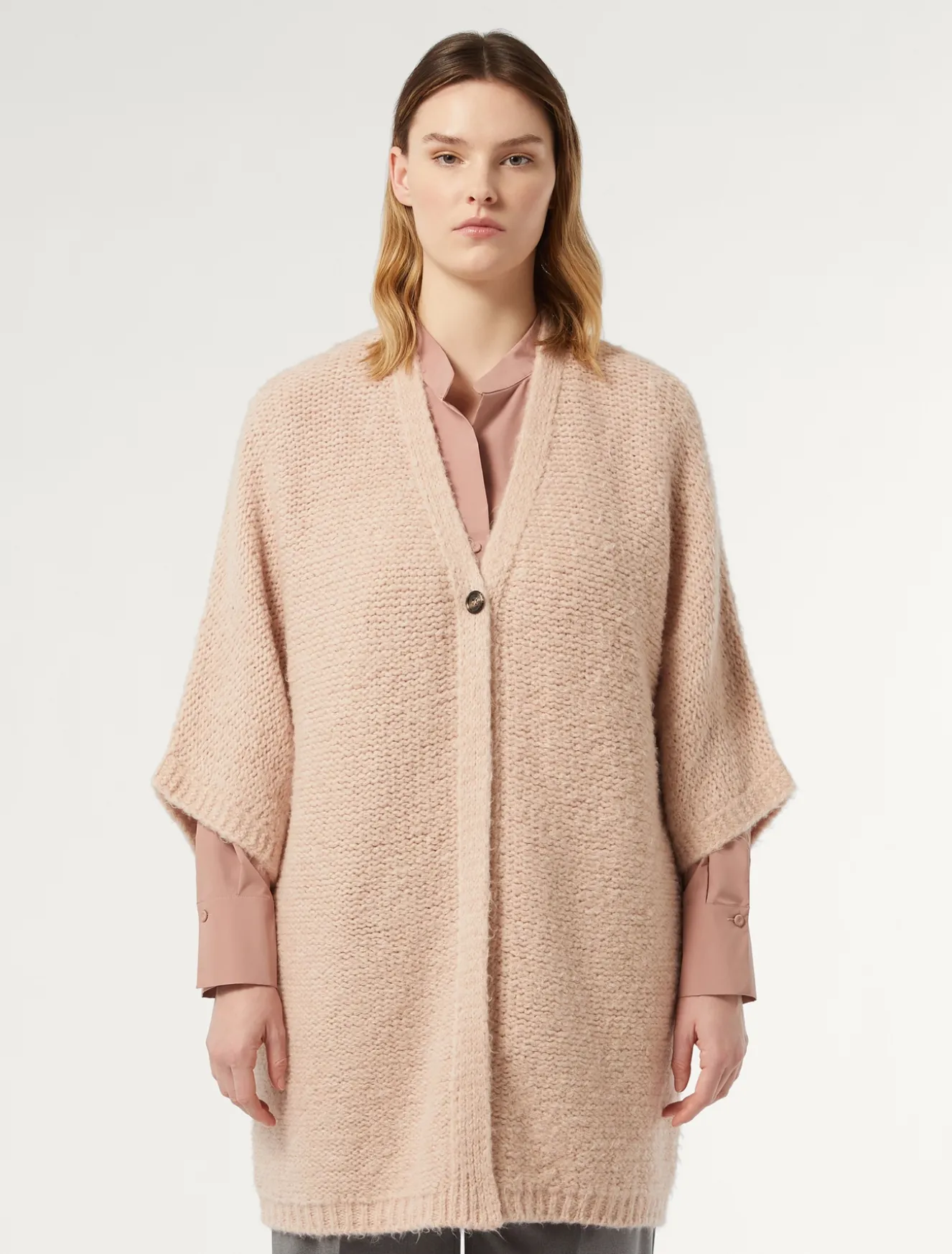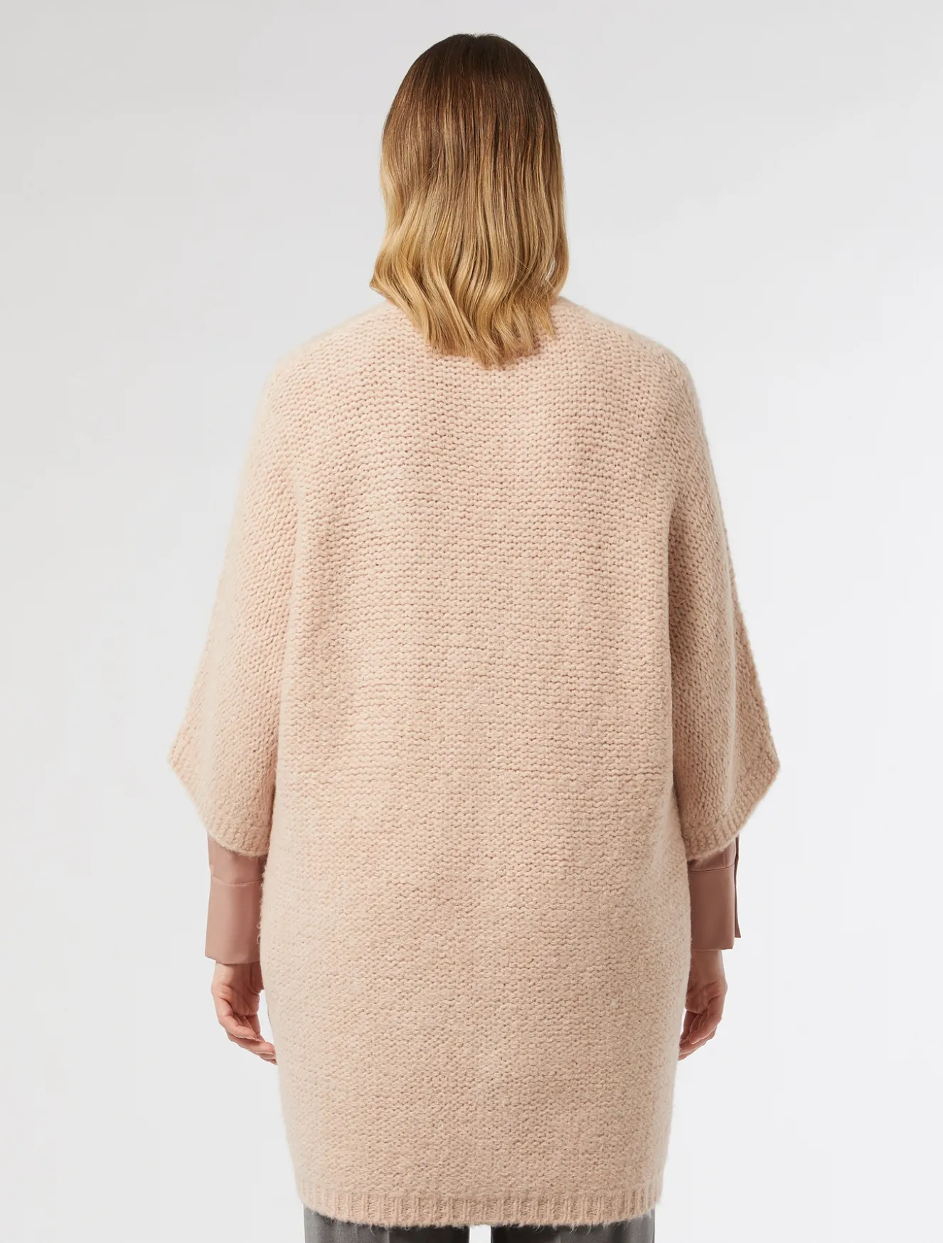 Volumi inediti per il cardigan in misto lana con scollo a V e maniche kimono. La linea over avvolge con stile. Il capo fa parte della collezione NOW by Marina Rinaldi.