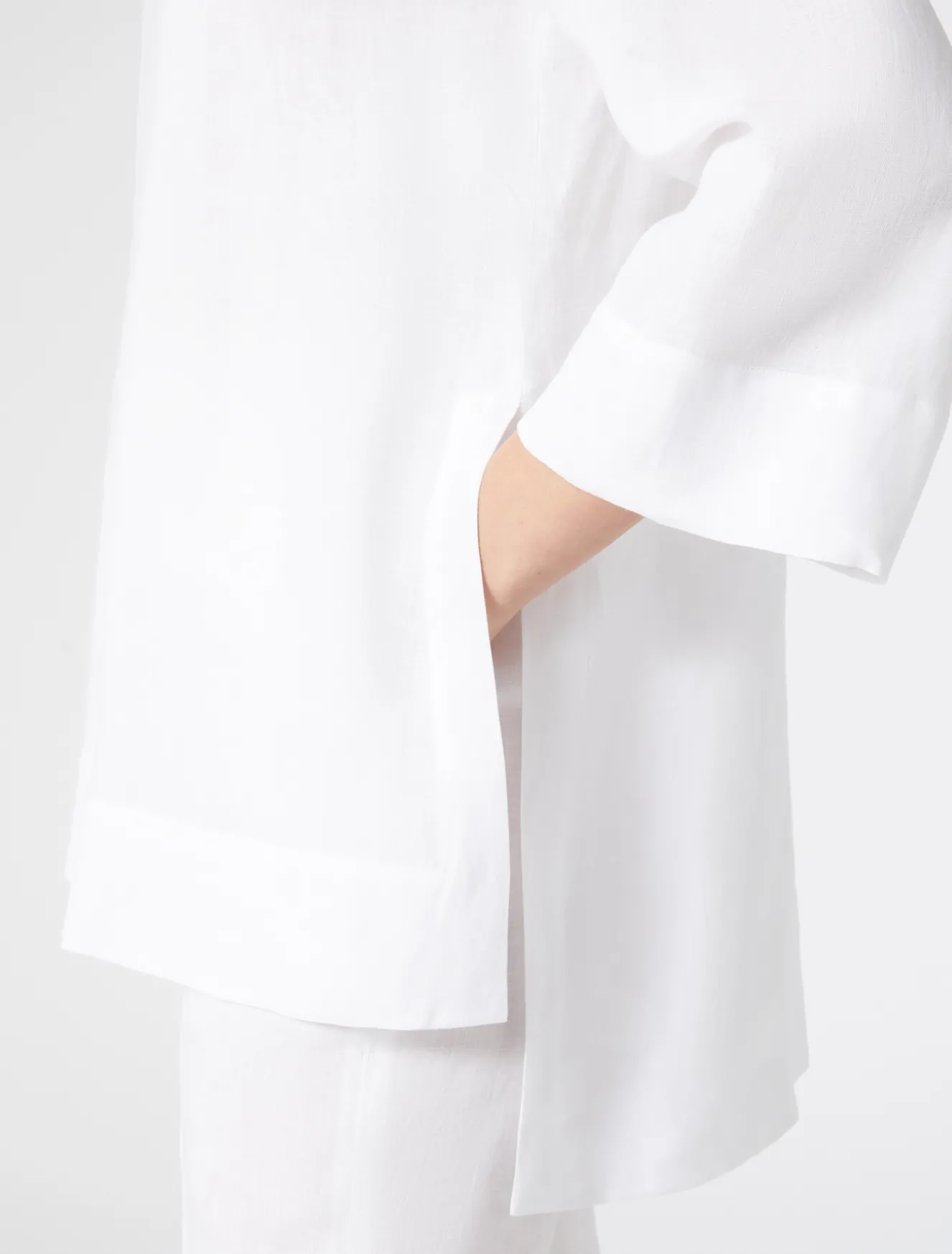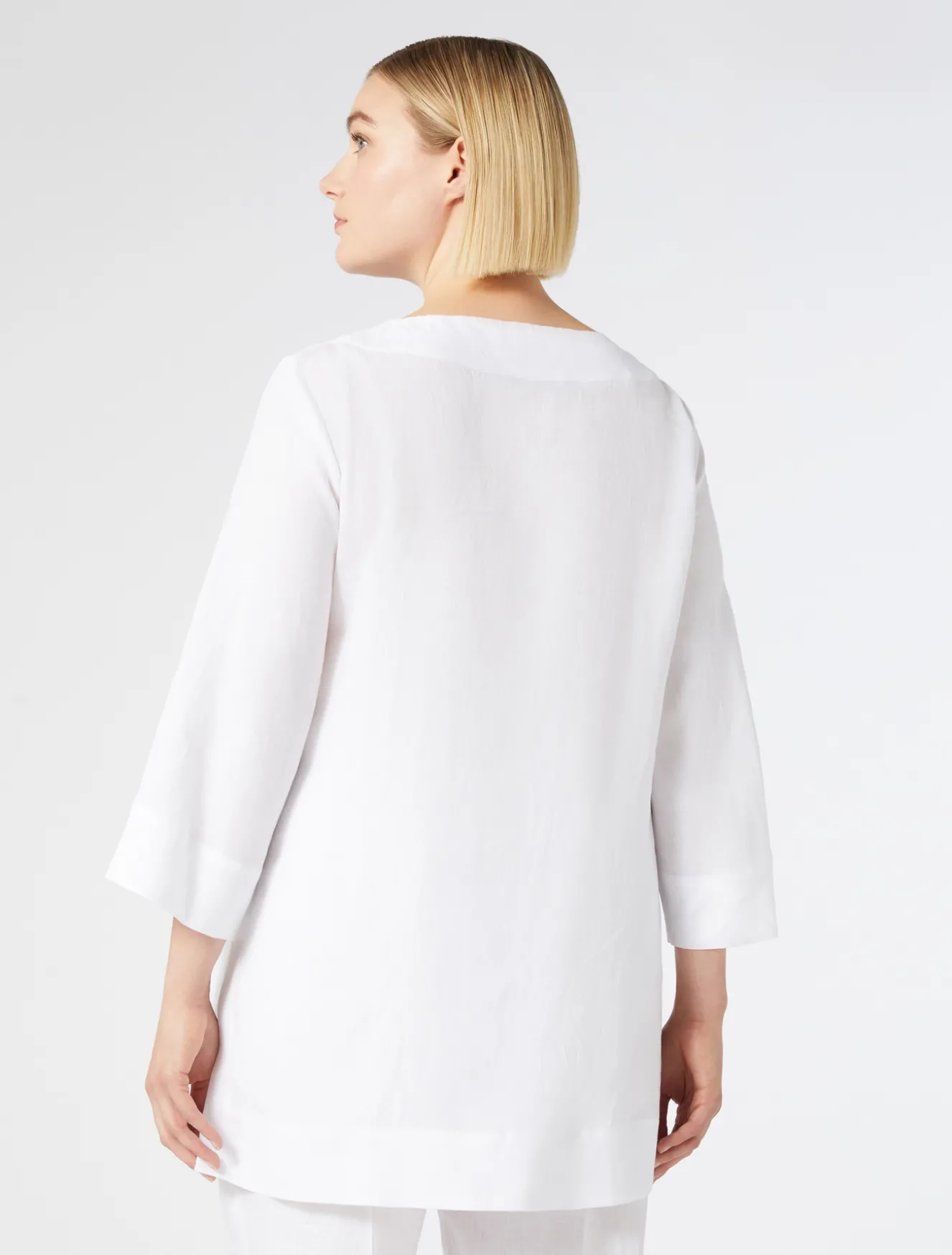 È realizzata in tela leggera di puro lino la casacca dalla linea boxy. Un essential del guardaroba da abbinare con facilità per look eleganti e ricercati, anche con i pantaloni e i bermuda in coordinato. Il capo fa parte della main collection Marina Rinaldi- Tela leggera di puro lino