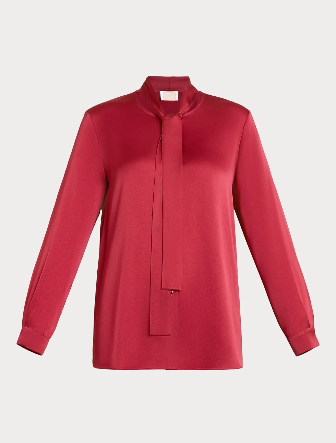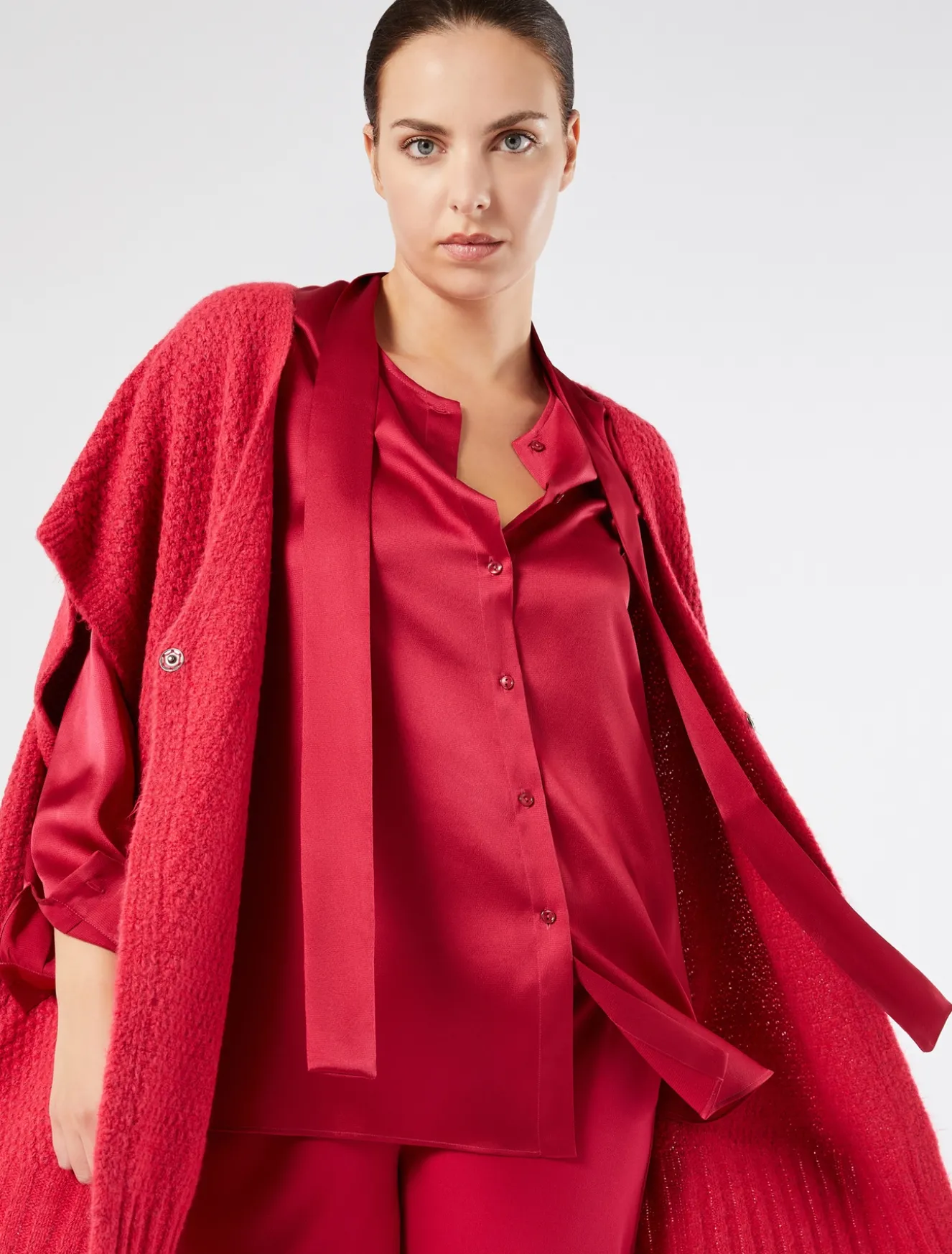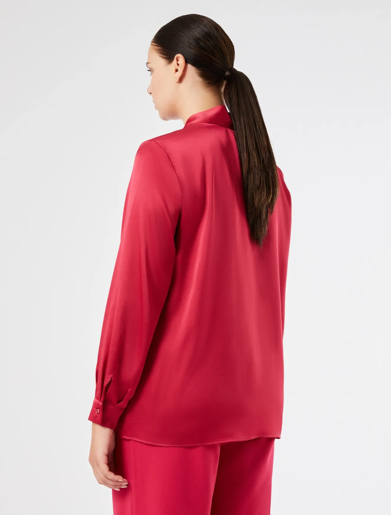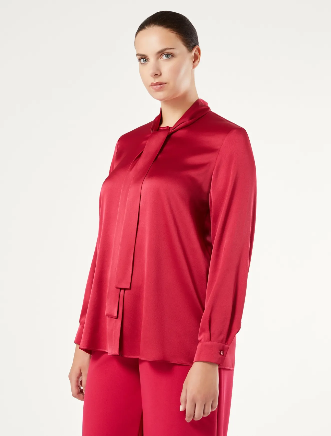 Texture sofisticate per la casacca in raso con girocollo e maniche lunghe. La sciarpina in tessuto coordinato aggiunge un tocco leggero.Il capo fa parte della collezione N.O.W.