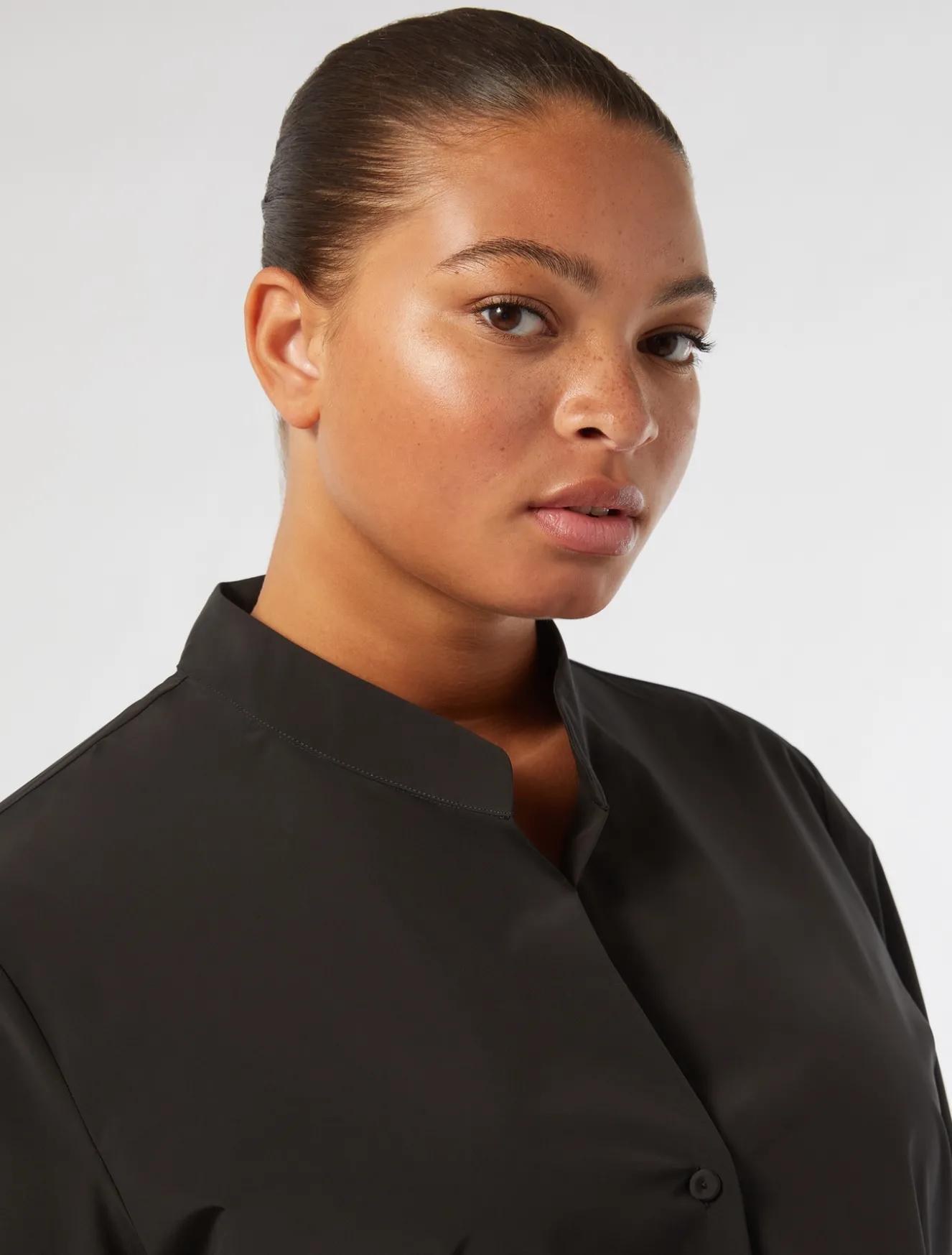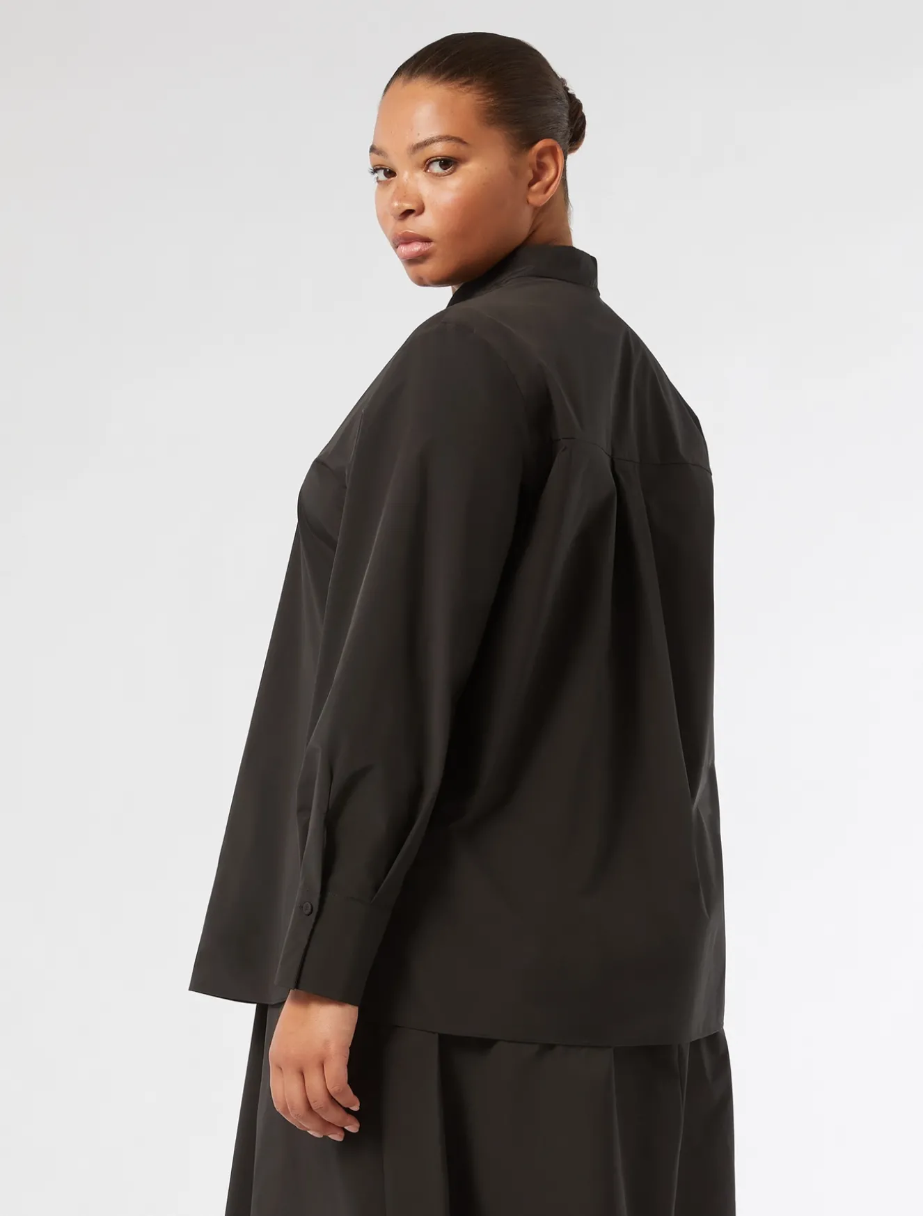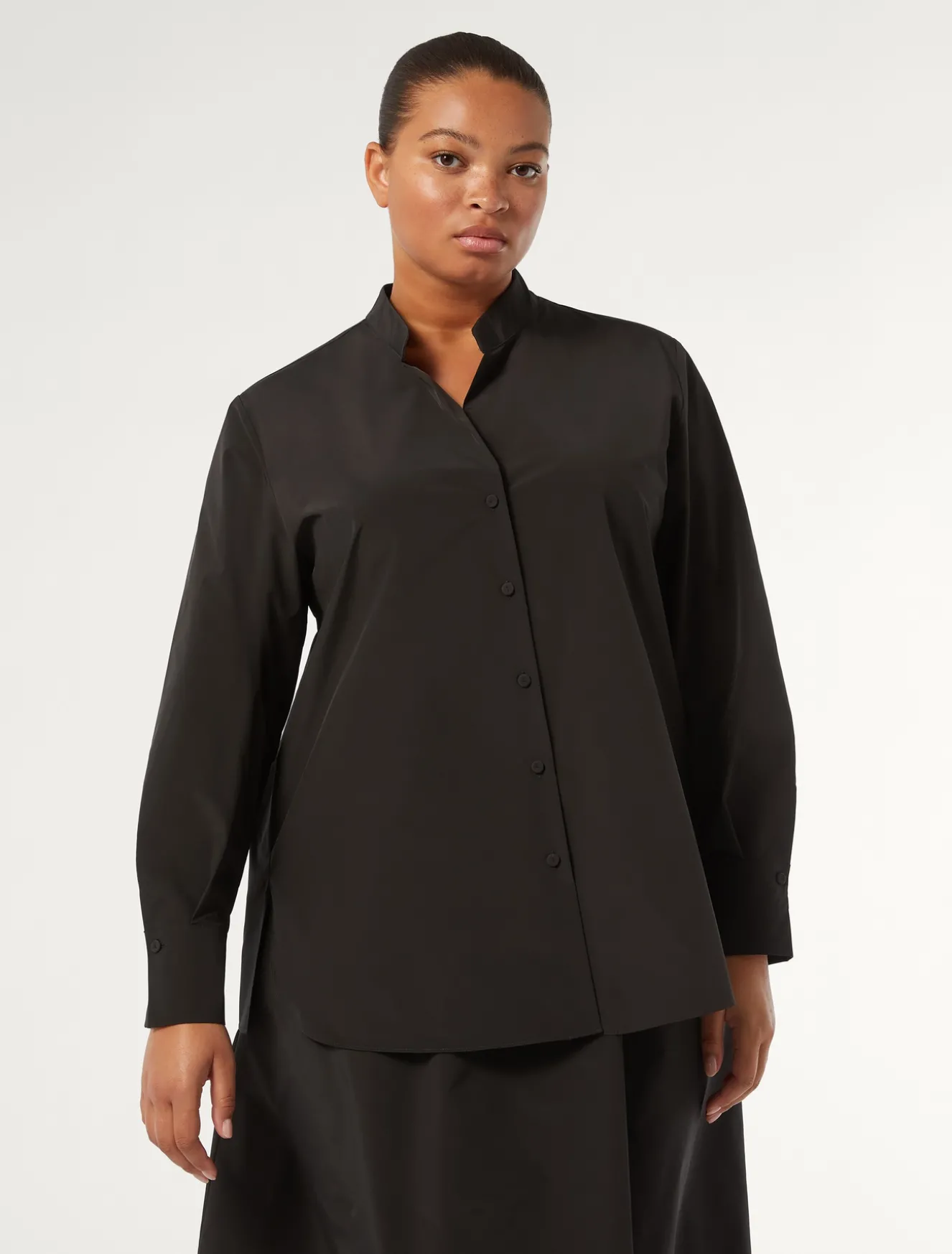 Perfetta da giorno a sera la casacca in taffetà con collo a listino e maniche lunghe. Linea dritta per un fit essenziale. La puoi abbinare alla gonna in coordinato. Il capo fa parte della collezione NOW by Marina Rinaldi.