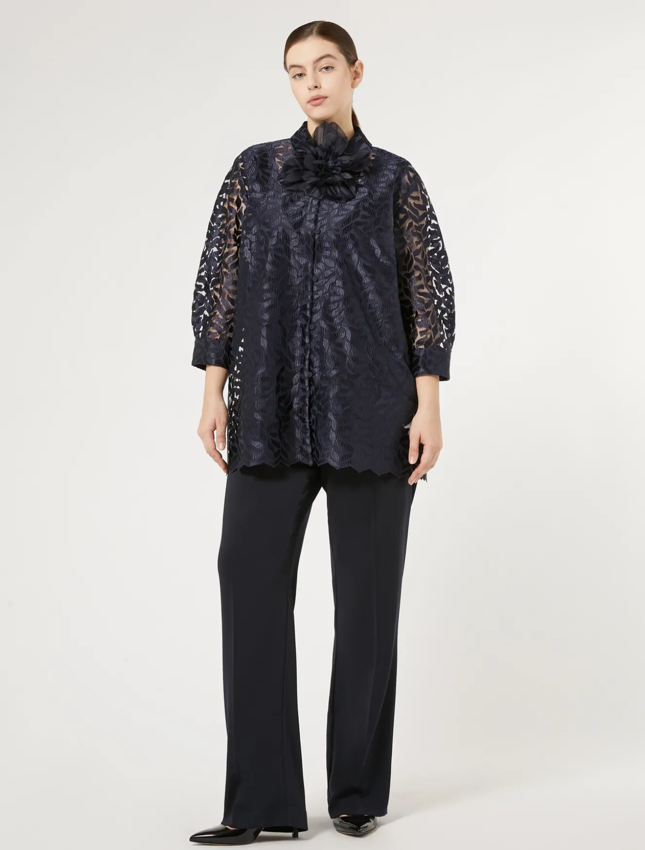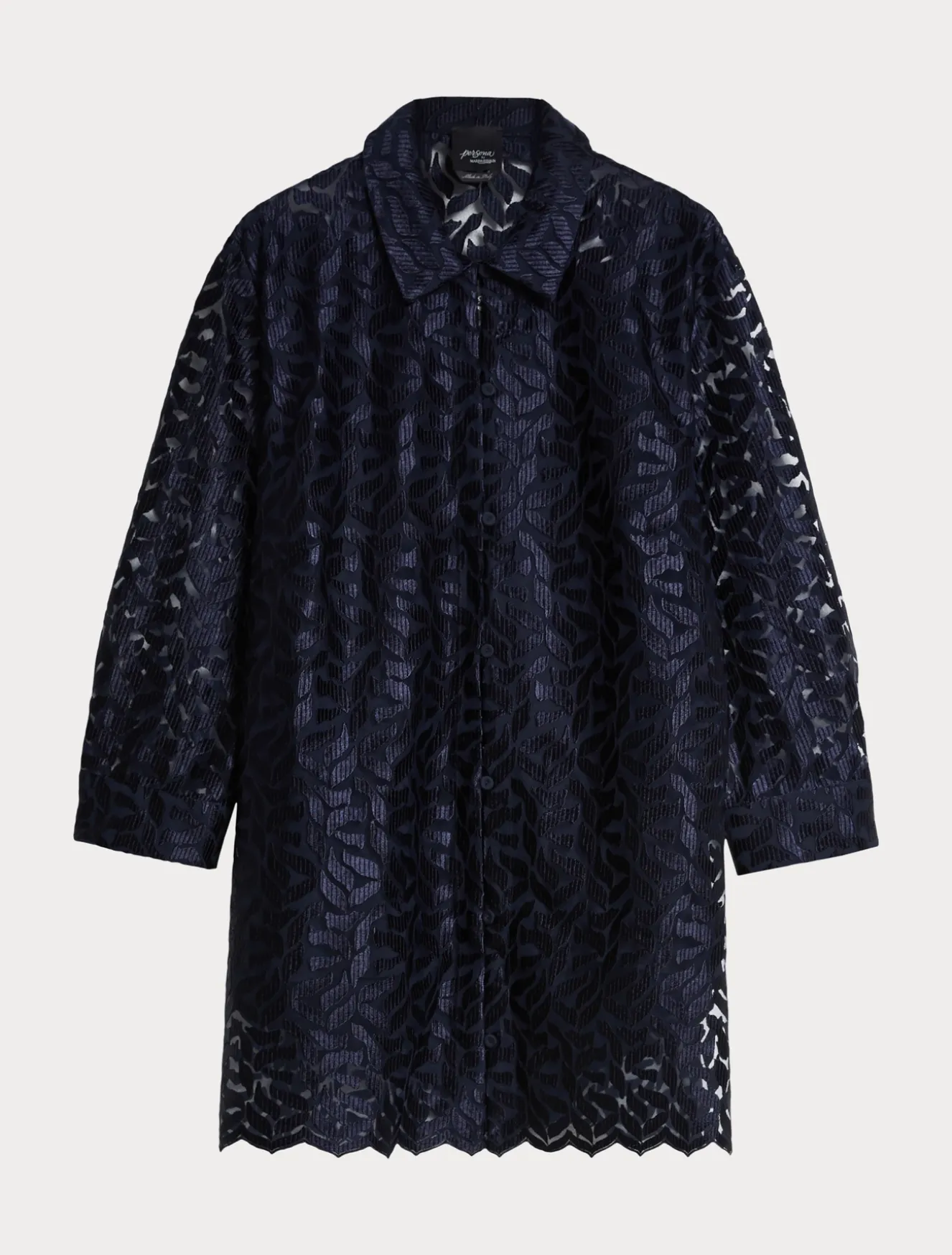 Texture romantiche per la casacca in tulle ricamato con collo a camicia, maniche lunghe, chiusura con bottoncini. Indossala con il top coordinato per più abbinamenti di stile.Il capo fa parte della collezione Persona by Marina Rinaldi.