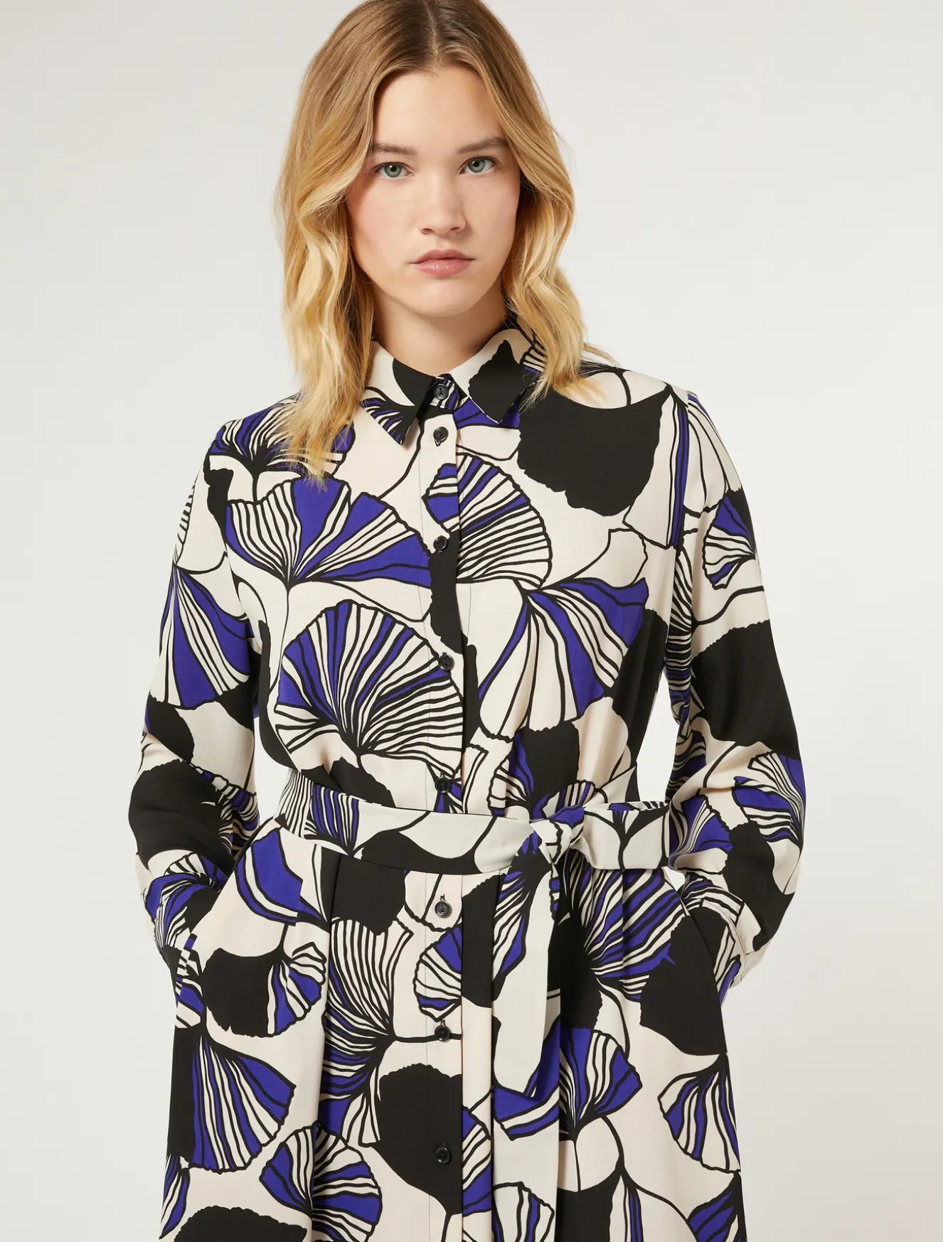 Sempre elegante lo chemisier in cady con colletto a camicia, maniche lunghe e tasche inserite nei fianchi. Con la cintura in tessuto coordinato regoli il volume.Il capo fa parte della collezione Persona by Marina Rinaldi.