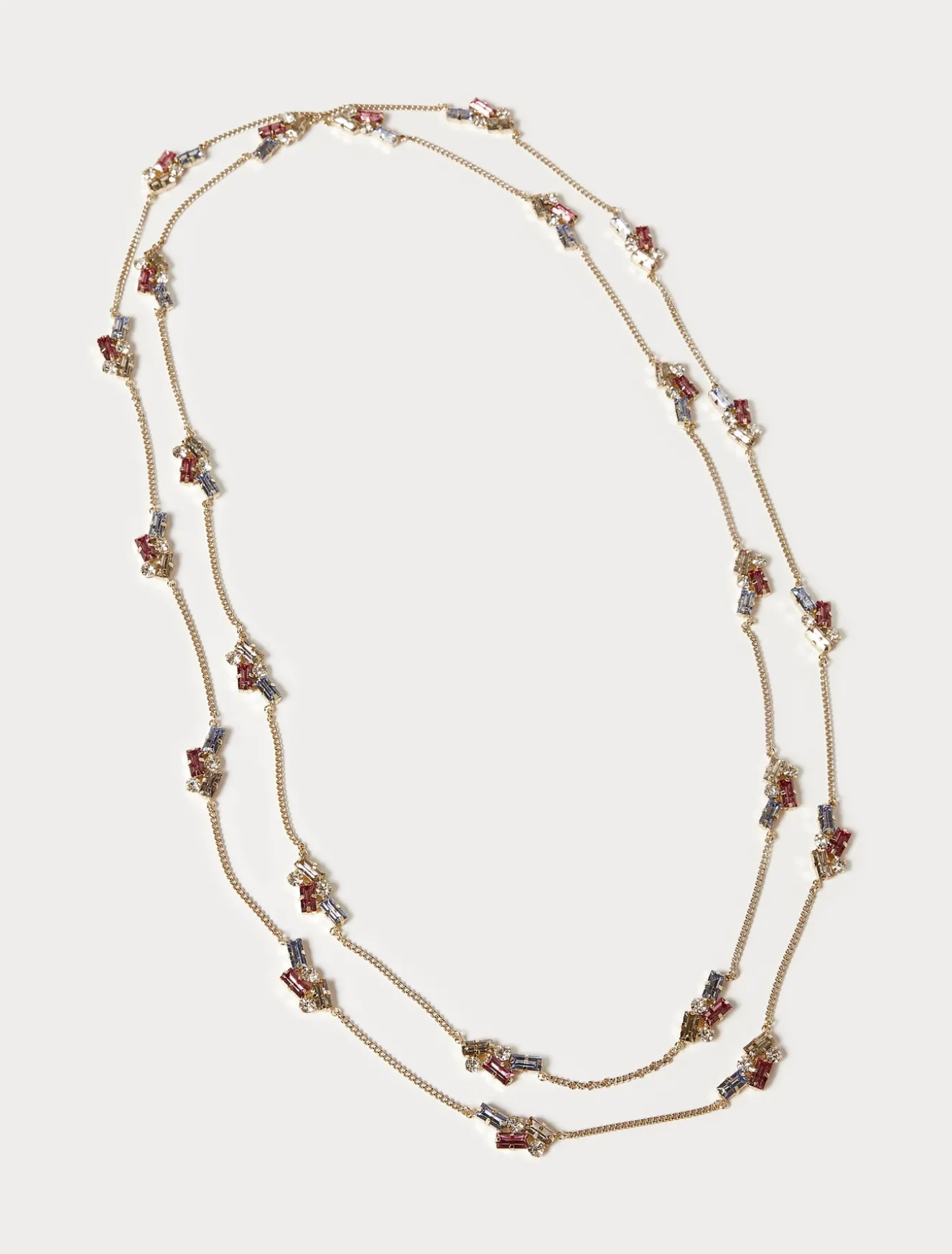 È composta da piccoli cabochon geometrici la collana extralong in catena sottile. Da abbinare agli orecchini in coordinato.Il capo fa parte della collezione Elegante.