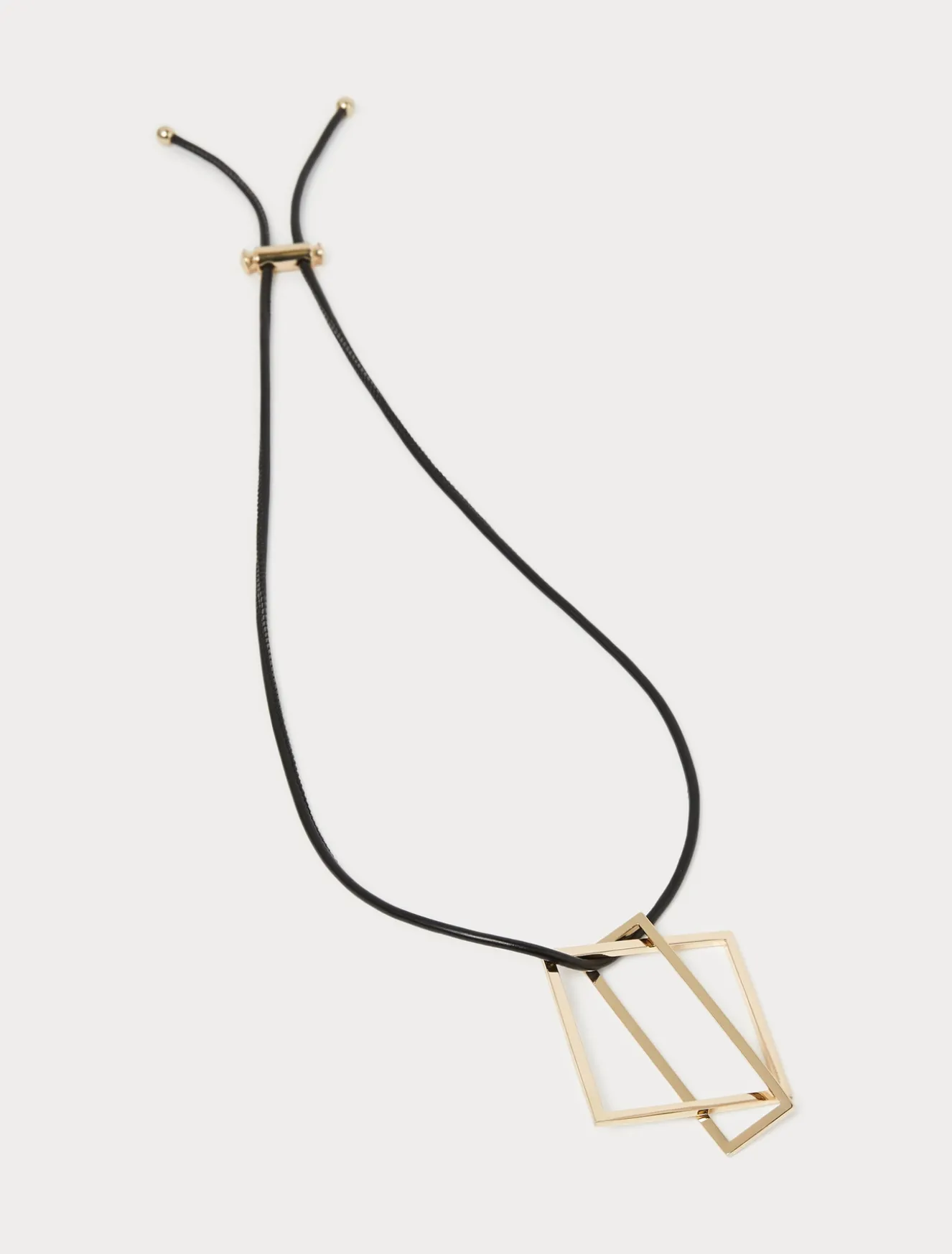 Puoi regolare come vuoi la collana lunga realizzata in corda effetto tessuto spalmato con ciondoli geometrici. Da regalare e regalarsi.