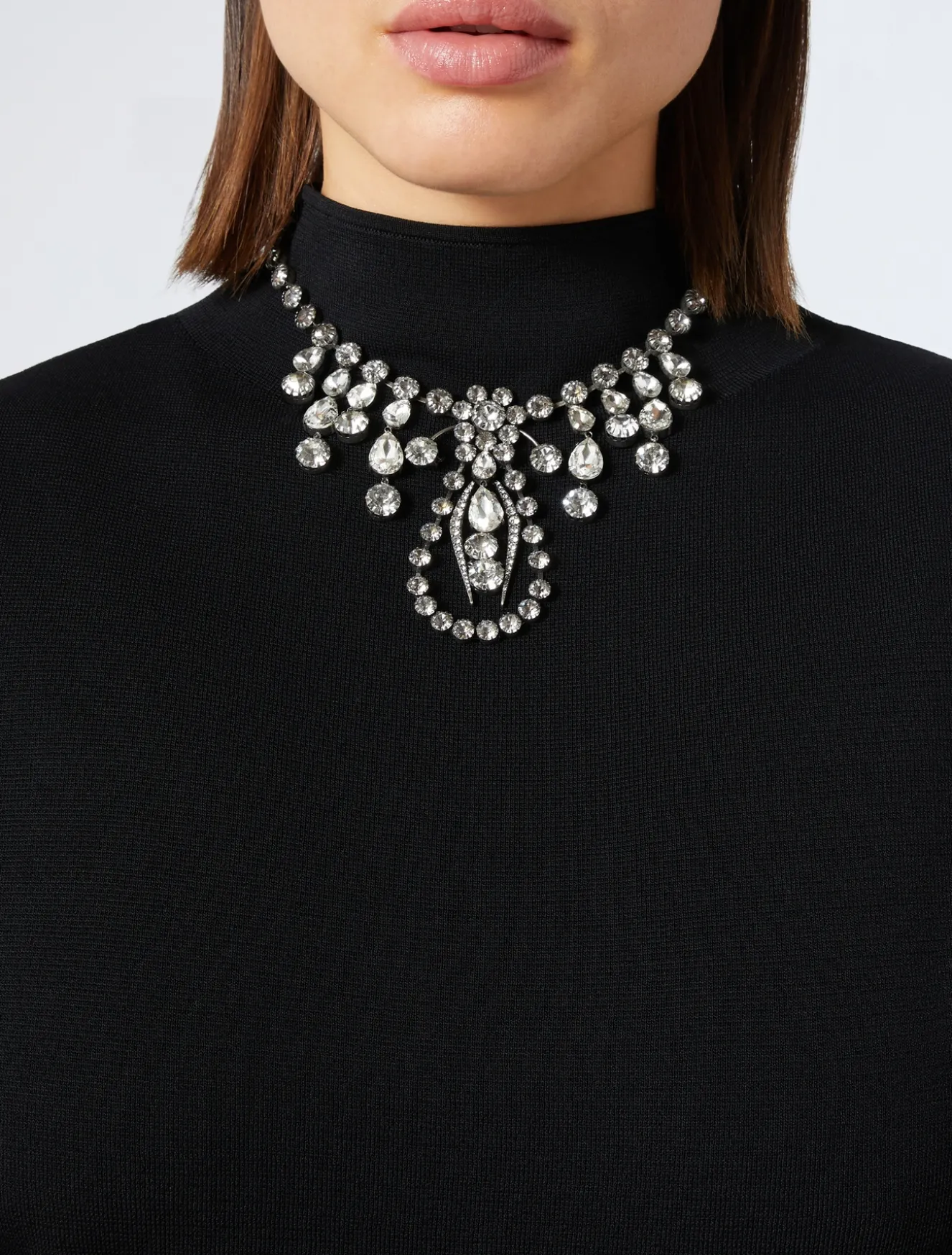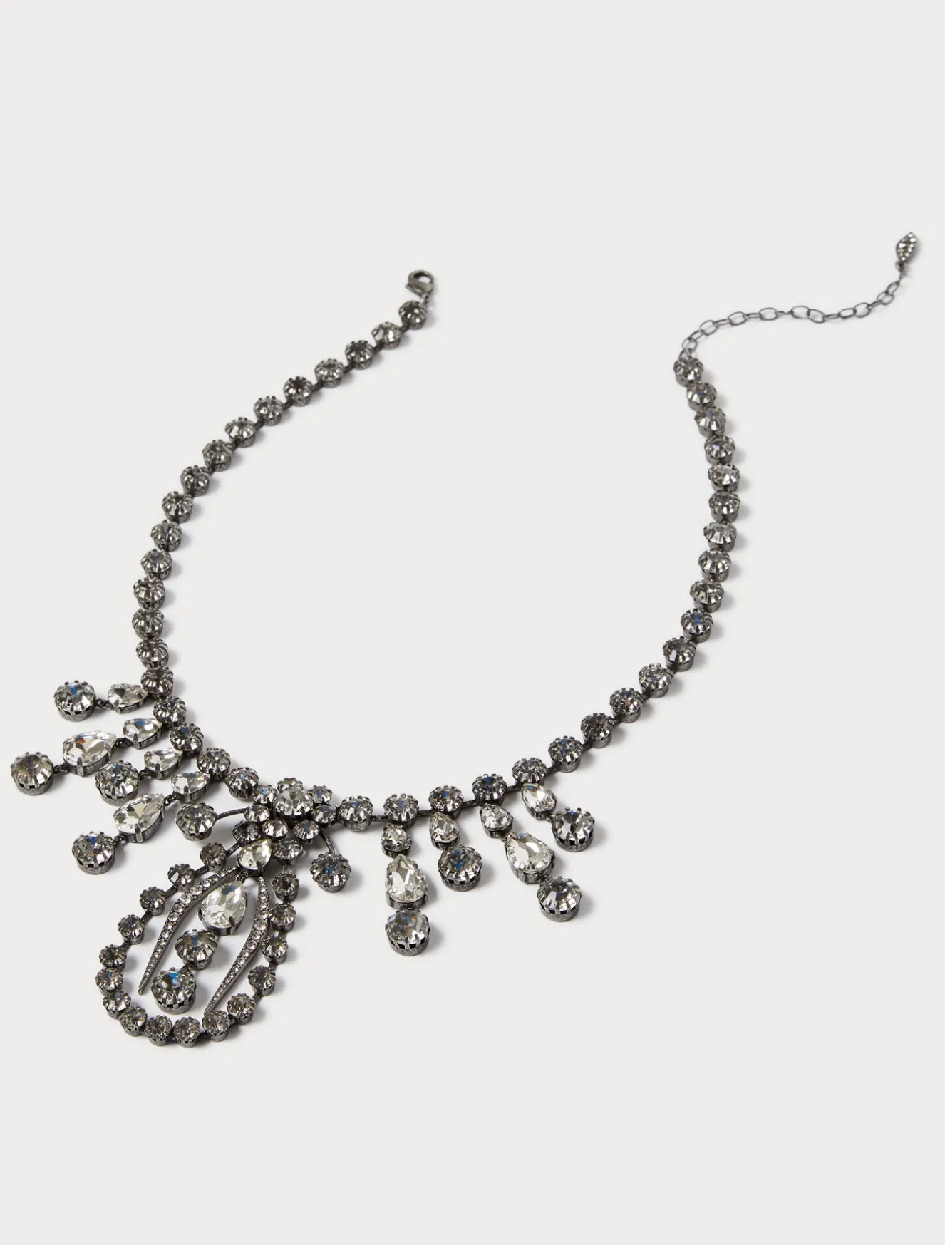 Ispirazione vintage per la parure in strass composta da collana e orecchini chandelier. Illuminano in un attimo lo stile.