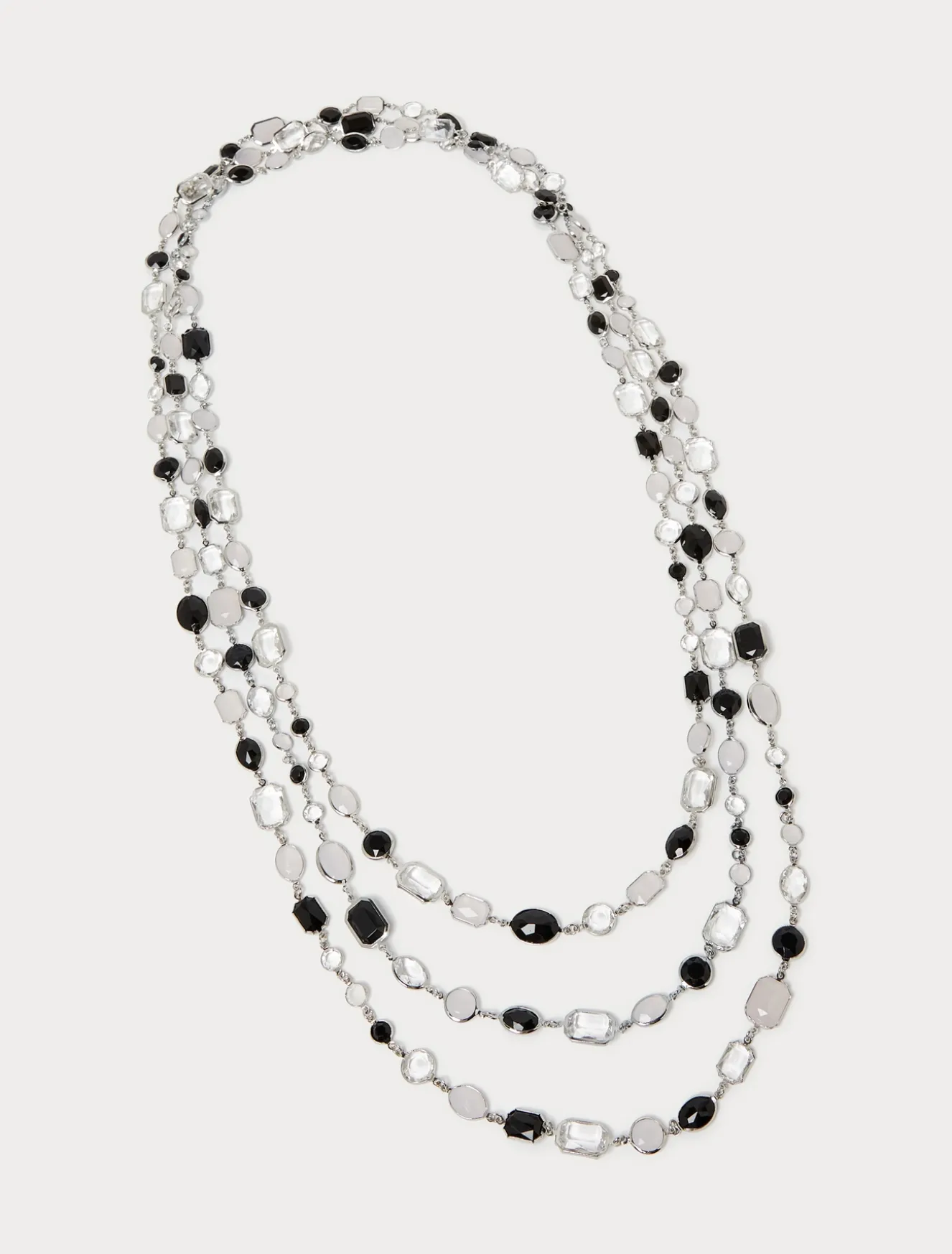 Completa il tuo stile con la collana lunga con cristalli di forme diverse. Da indossare e regolare come vuoi, per illuminare gli outfit delle occasioni speciali.