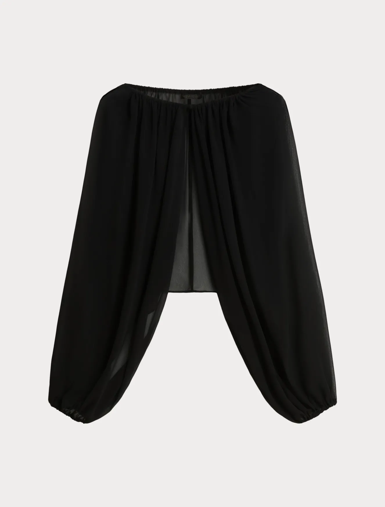 Volume ricercato per il coprispalle in georgette con maniche ampie arricciate allo scollo e ai polsi. Completamento perfetto per le occasioni importanti.Il capo fa parte della collezione Elegante.