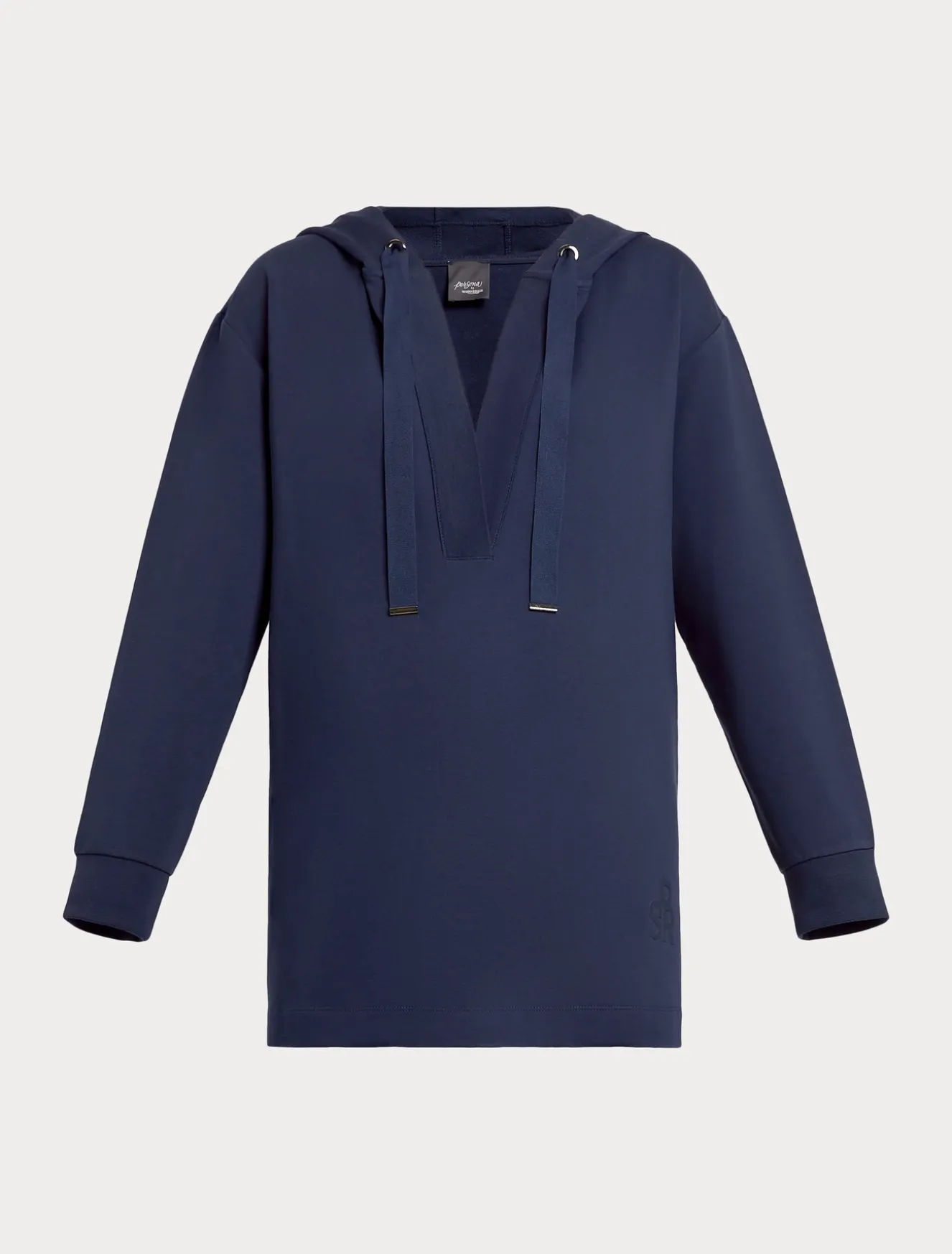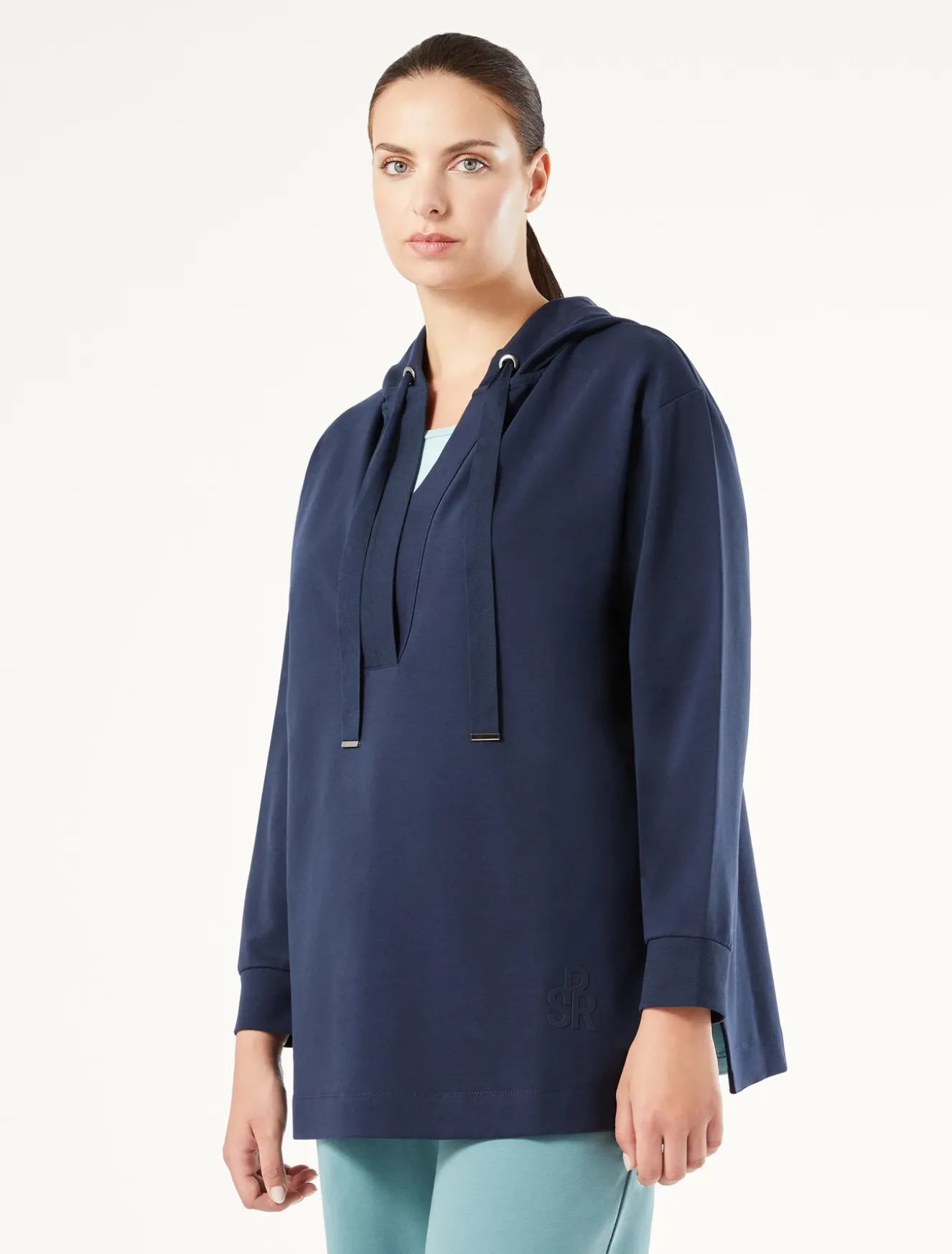 Porta nel tuo guardaroba una nota athleisure con la felpa in jersey di cotone. Il cappuccio ha coulisse in gros-grain, il dettaglio lettering stampato sul fondo dona carattere.Il capo fa parte della collezione Persona by Marina Rinaldi.