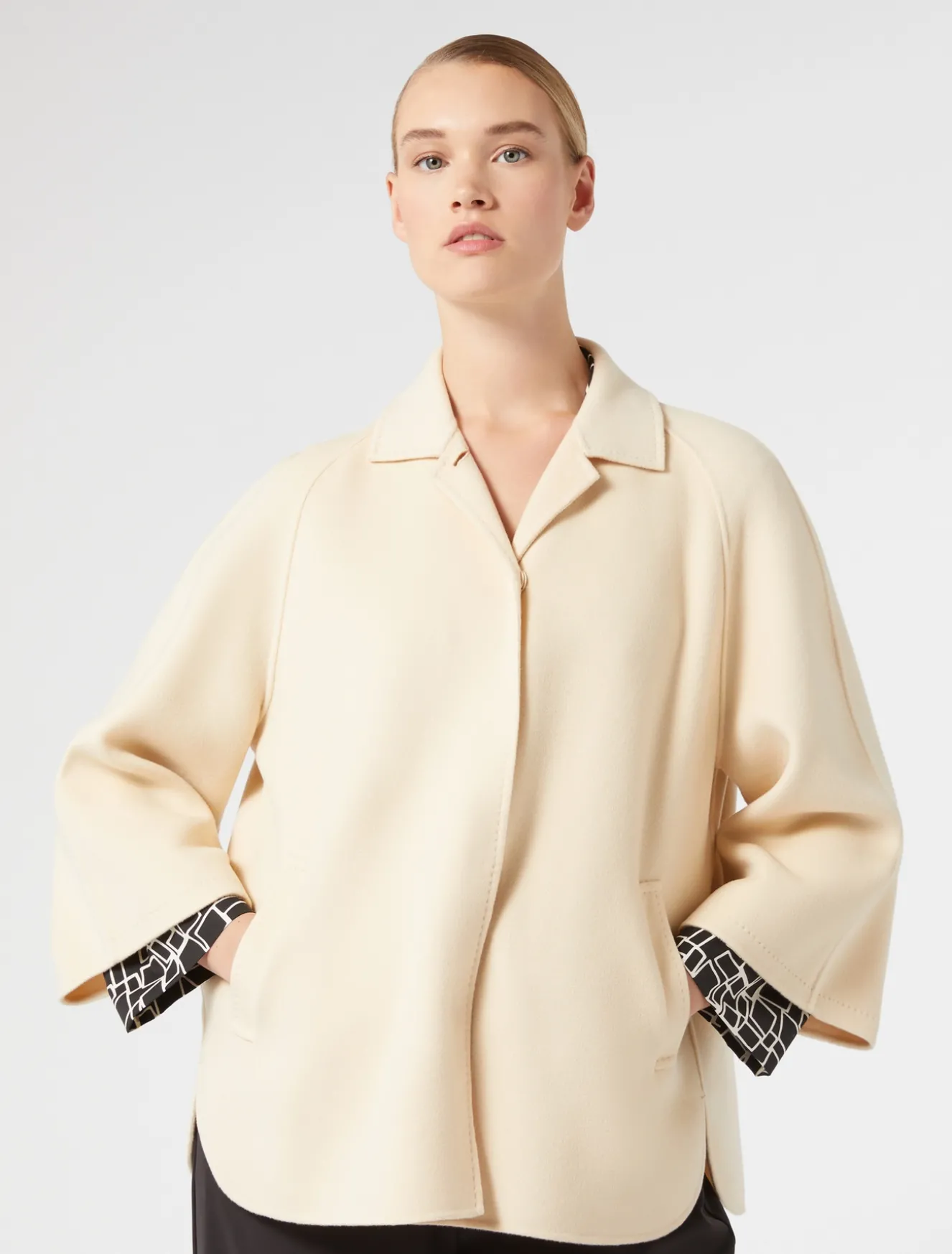 Completa con stile il tuo look con la giacca cucita a mano in double di pura lana e cachemire. Design essenziale e versatile, perfetto per tutti i giorni.