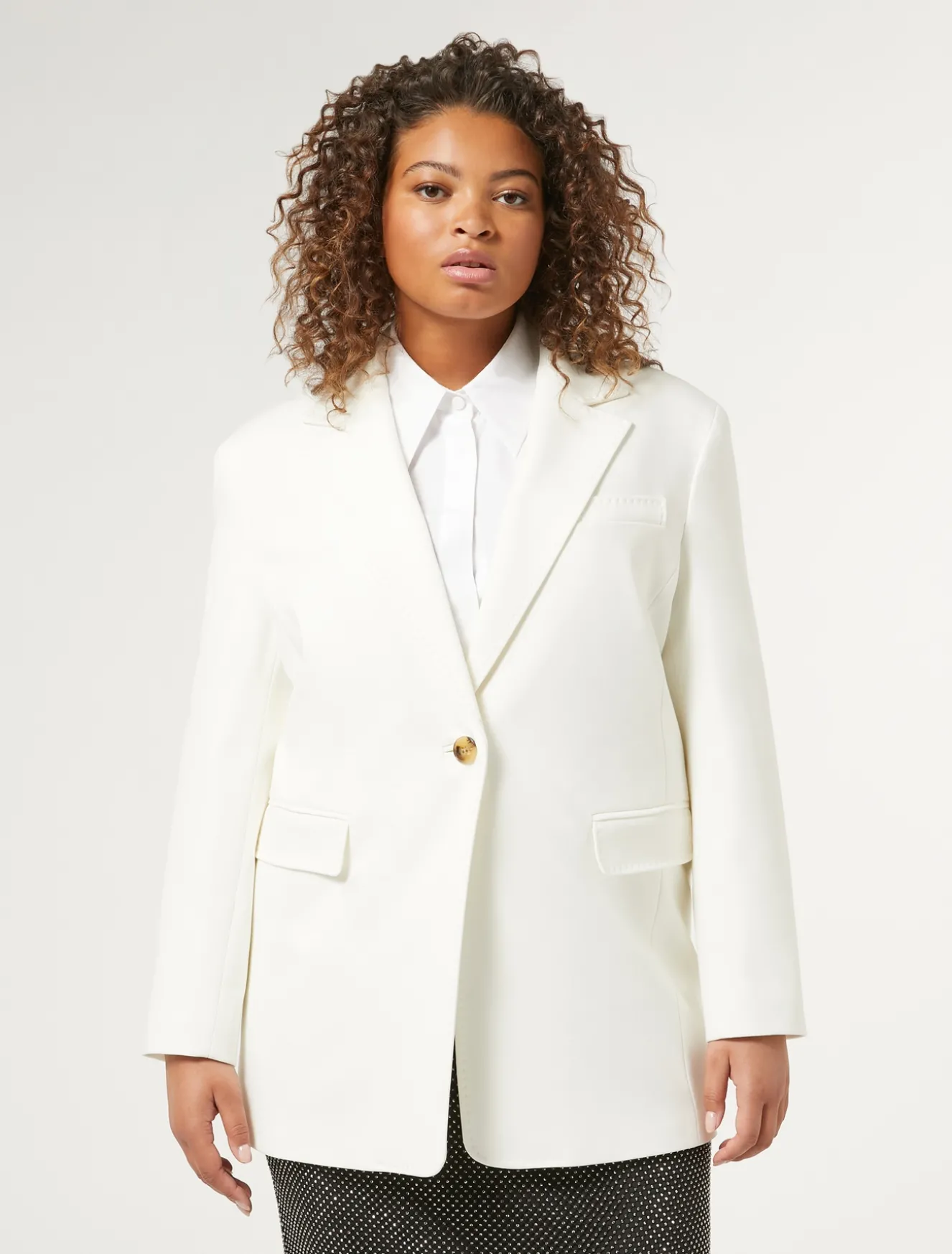 Fascino passe-partout per la giacca blazer in jersey bistretch, rifinita da puntino sartoriale fatto a mano. Facile da abbinare, anche ai pantaloni flare e all’abito e top in coordinato.Il capo fa parte della main collection Marina Rinaldi.