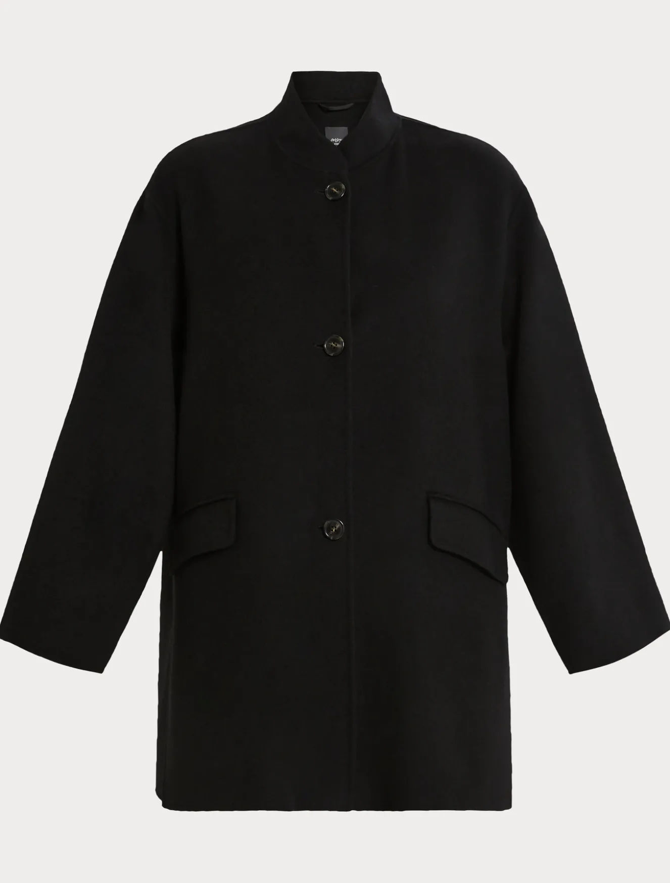 Spirito urbano ed eleganza per il giaccone in double di lana cucito a mano con collo ad anello e maniche lunghe. Le tasche con patta regalano un tocco extra di comfort.Il capo fa parte della collezione Persona by Marina Rinaldi.