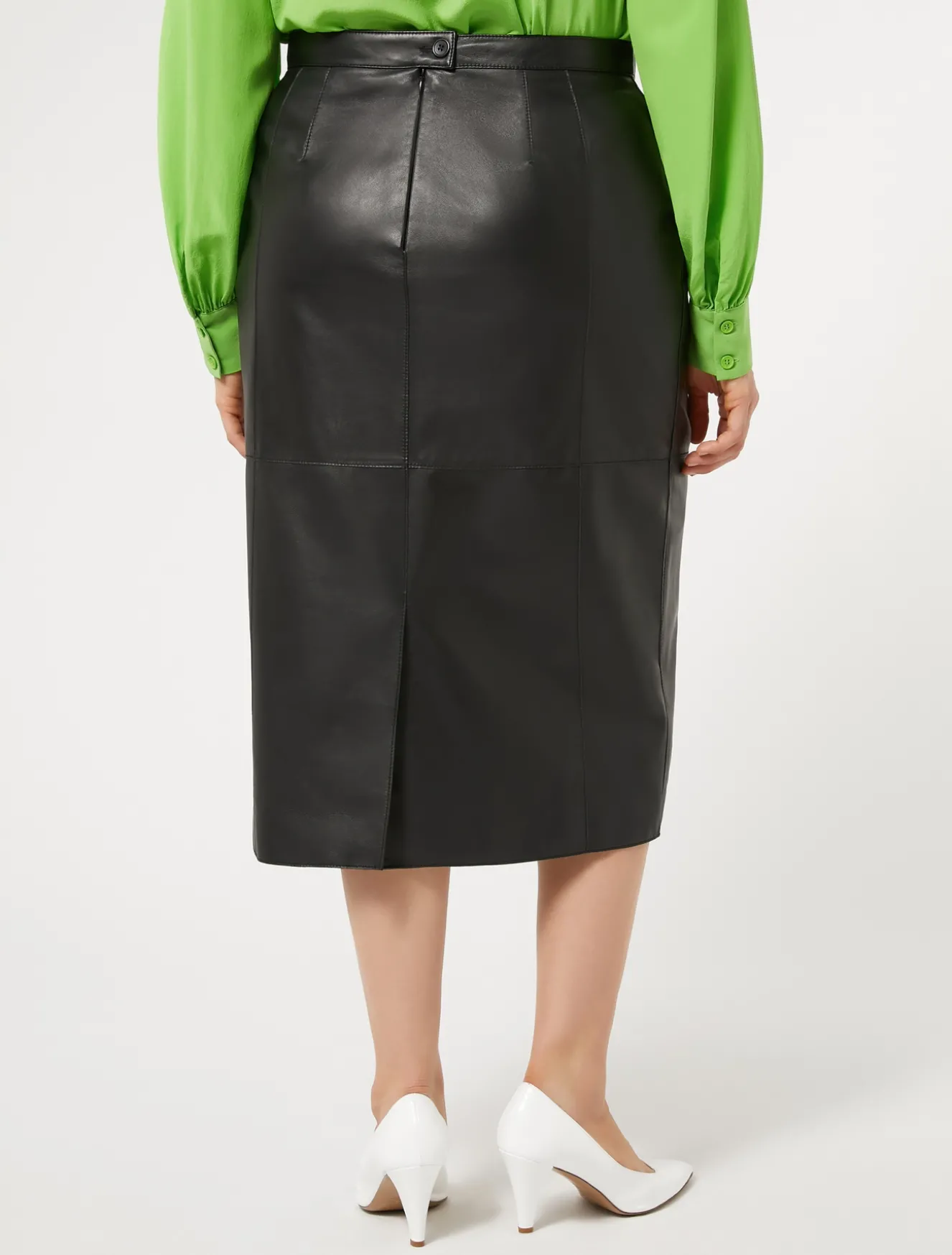 Eleva in un attimo lo stile questa gonna a tubino in pelle con tagli ergonomici davanti e dietro. Base perfetta di look attuali.Il capo fa parte della main collection Marina Rinaldi.
