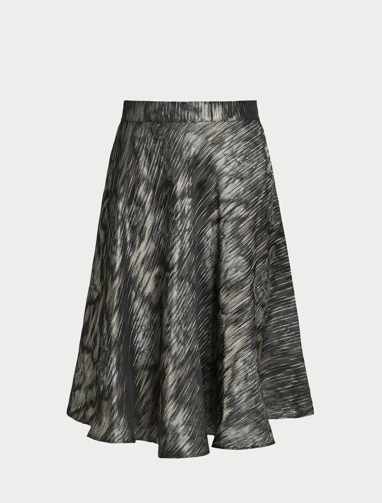 Stile senza tempo per la gonna in tessuto jacquard a disegno floreale con linea a ruota. La chiusura con zip su un fianco completa il capo. Il capo fa parte della collezione Persona by Marina Rinaldi.