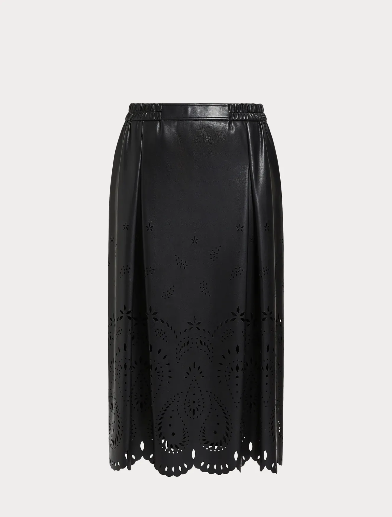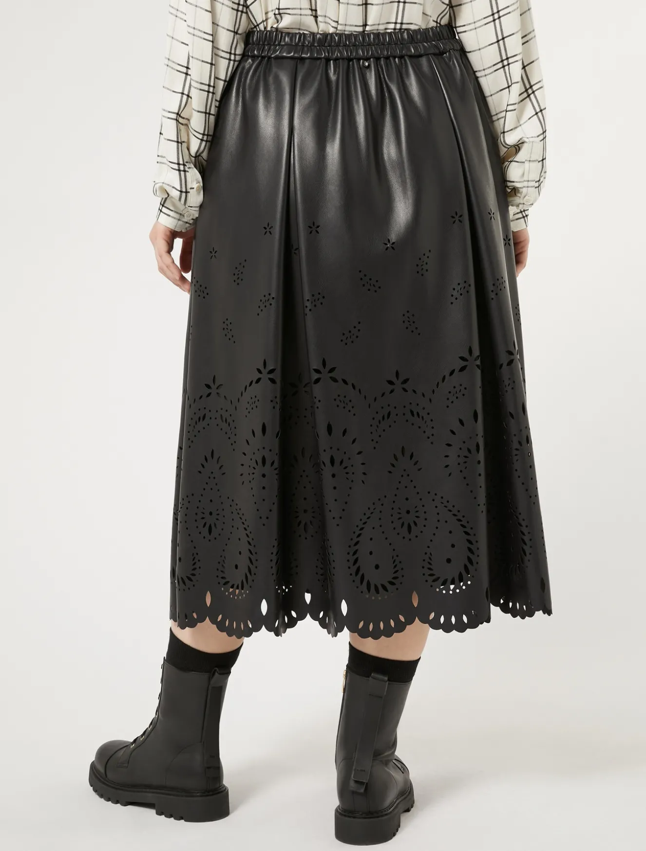 Ricercata lavorazione al laser in capo effetto sangallo piazzata per la gonna midi, dalla linea svasata. Per dare carattere allo stile.Il capo fa parte della collezione Marina Sport.