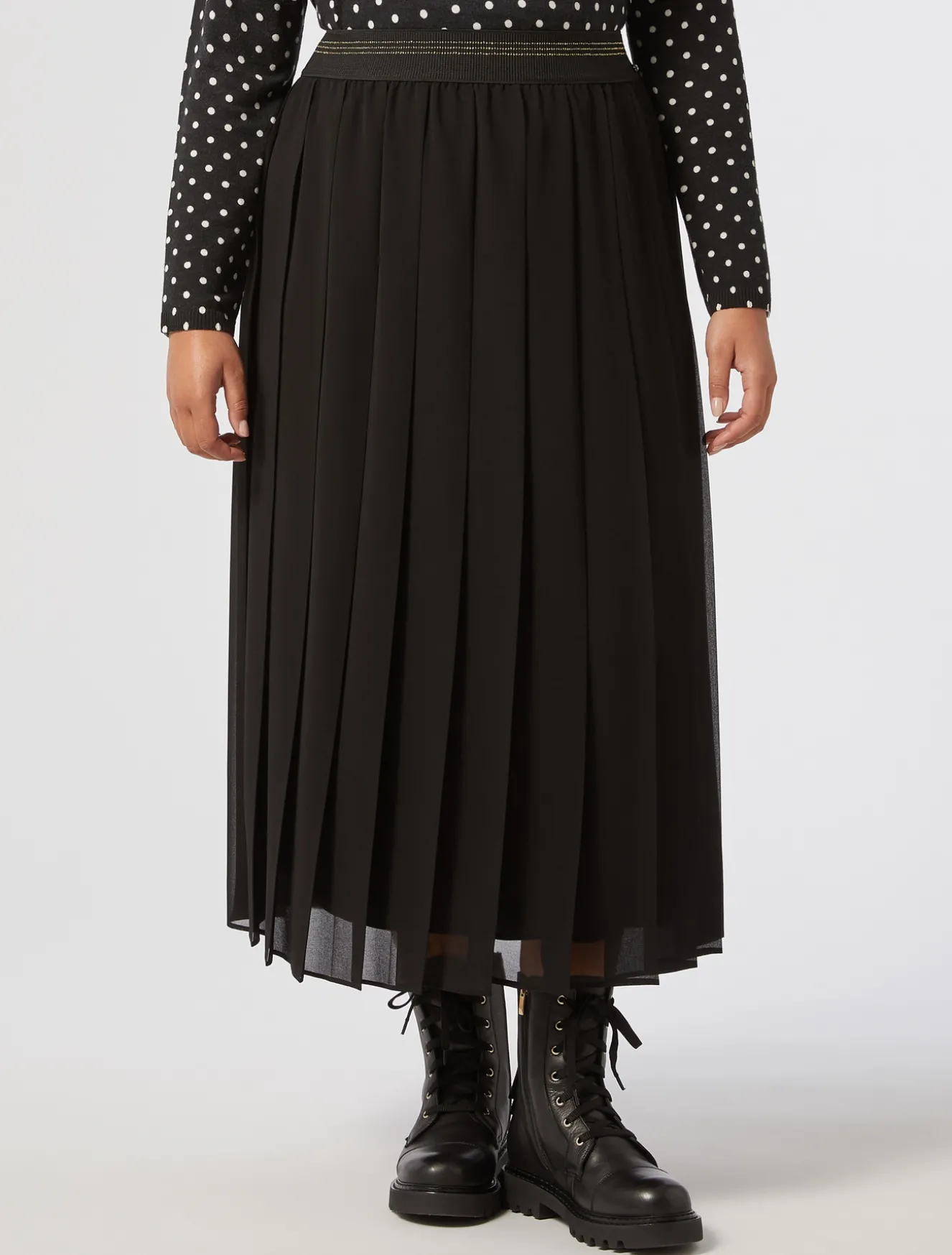 Attitudine femminile per la gonna lunga in georgette a pieghe. Perfetta per dare movimento al tuo stile in un attimo.Il capo fa parte della collezione Marina Sport.