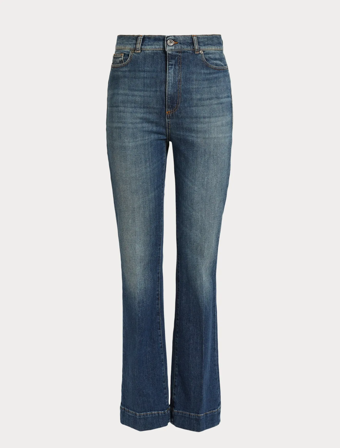 Attitudine sartoriale per i jeans flare in denim stretch lavato in capo, trattamento vintage. Per elevare lo stile in un attimo.Il capo fa parte della collezione Marina Sport.