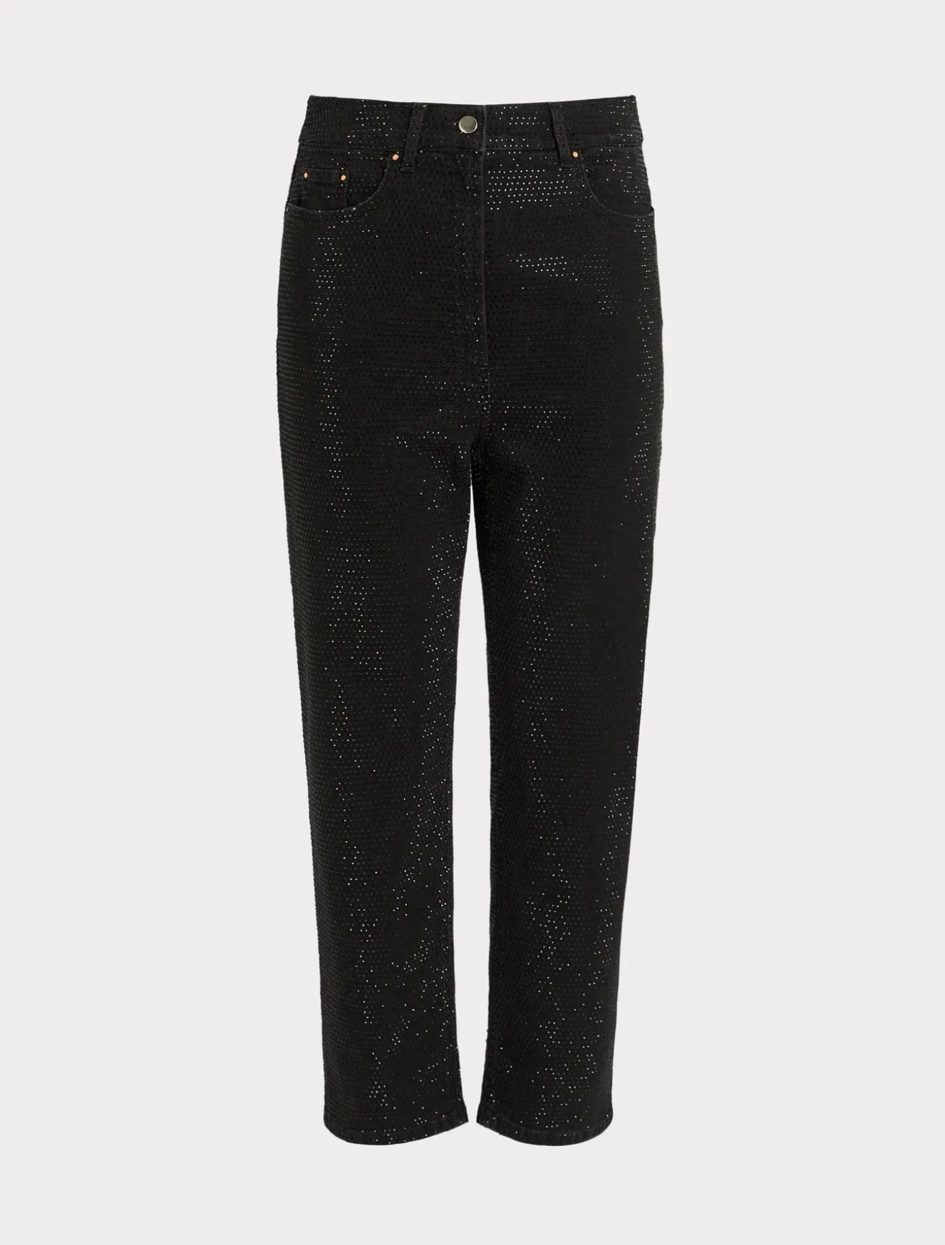 Strass all over per i jeans slim fit in denim stretch monoelastico. Perfetti per dare un tocco luminoso allo stile.Il capo fa parte della main collection Marina Rinaldi.