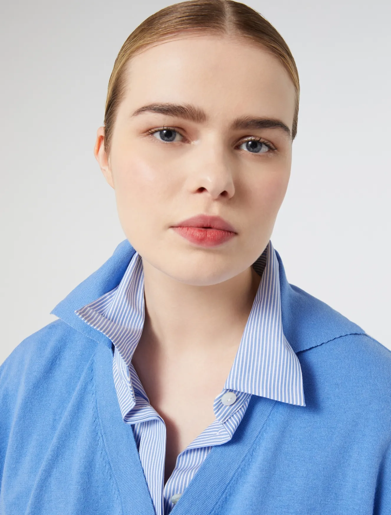 Linea a polo per la maglia in cotone e cachemire con lavorazione in rasato dritto. Versatile e facile da abbinare in look casual e formali.