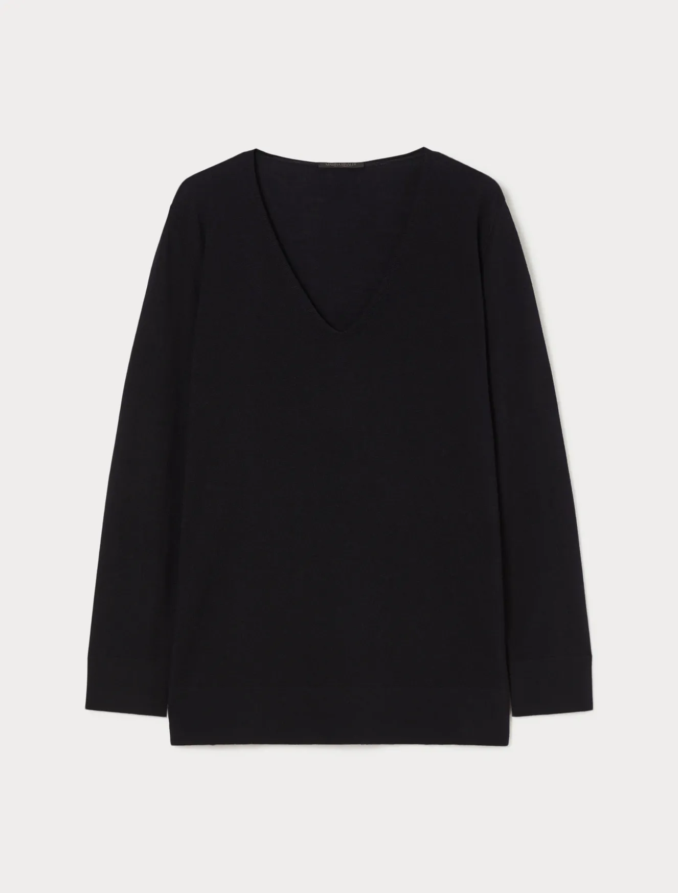 Completa il tuo stile con la maglia in pura lana merino extrafine. Essential del guardaroba da abbinare in un attimo.