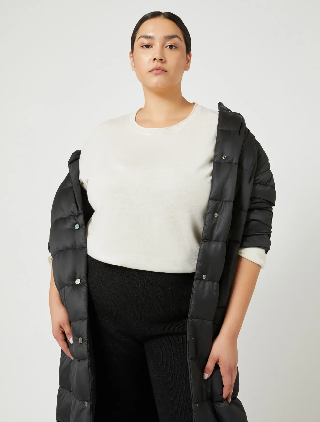 Morbida e ricercata la maglia in lana effetto metallizzato, dalla linea dritta. Perfetta per dare un tocco ricercato allo stile.Il capo fa parte della collezione Voyage.