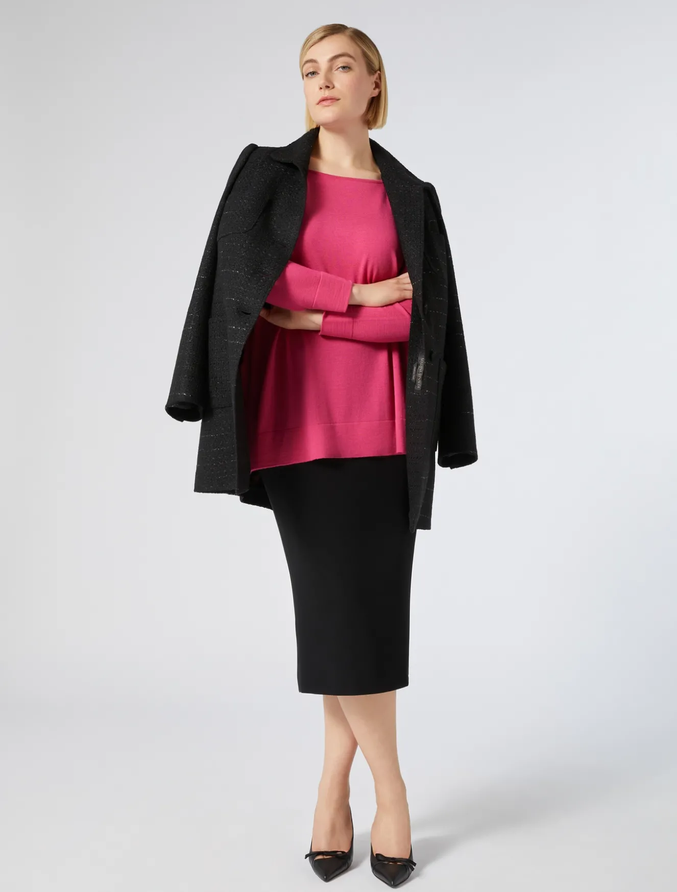 È realizzata in pura lana merino extrafine la maglia, dalla linea over. Soffice e confortevole, è perfetta per completare i look quotidiani.