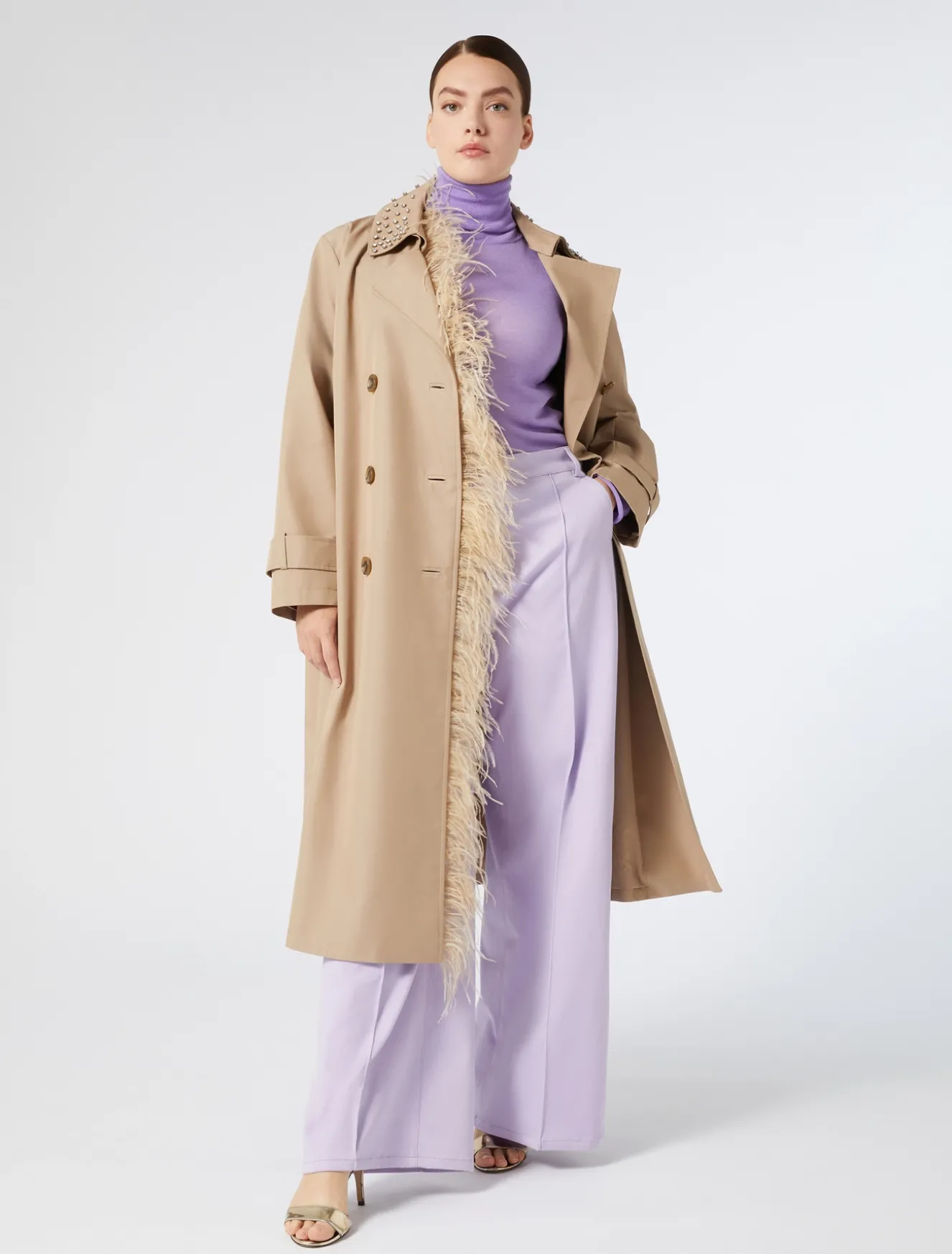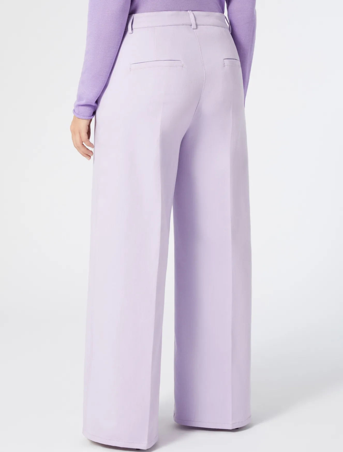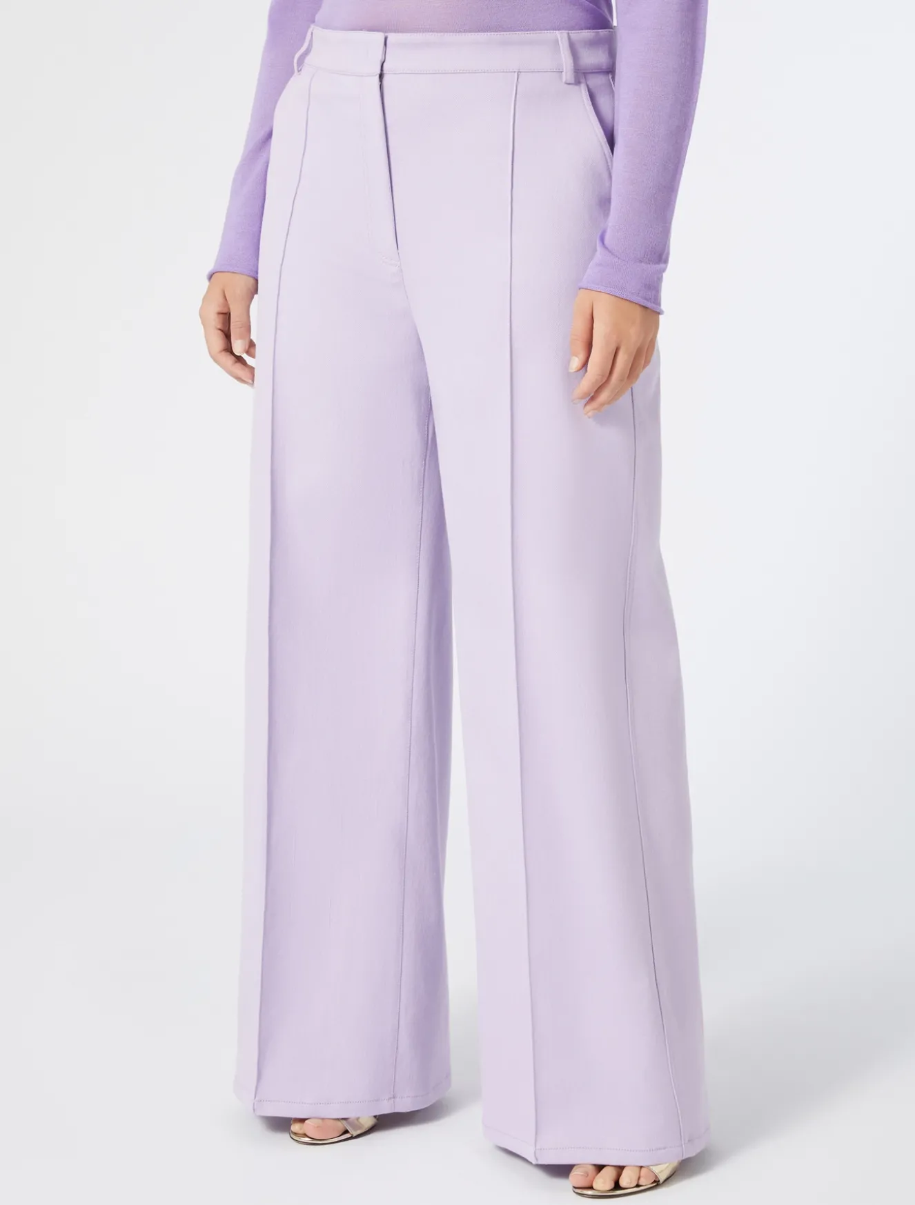 Linea attuale e versatile per i pantaloni in bull di cotone monoelastico. Sono rifiniti da doppie impunture a contrasto.Il capo fa parte della main collection Marina Rinaldi.
