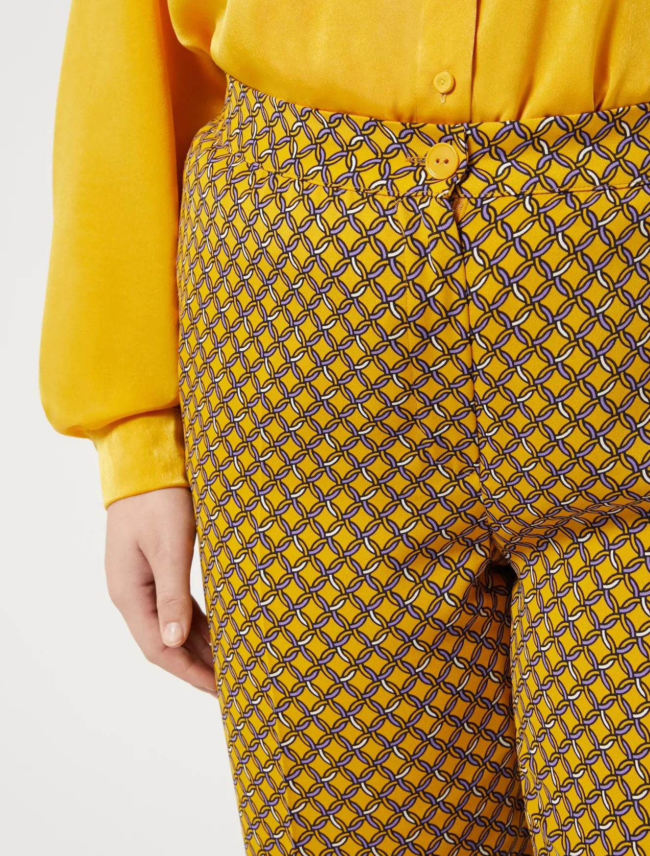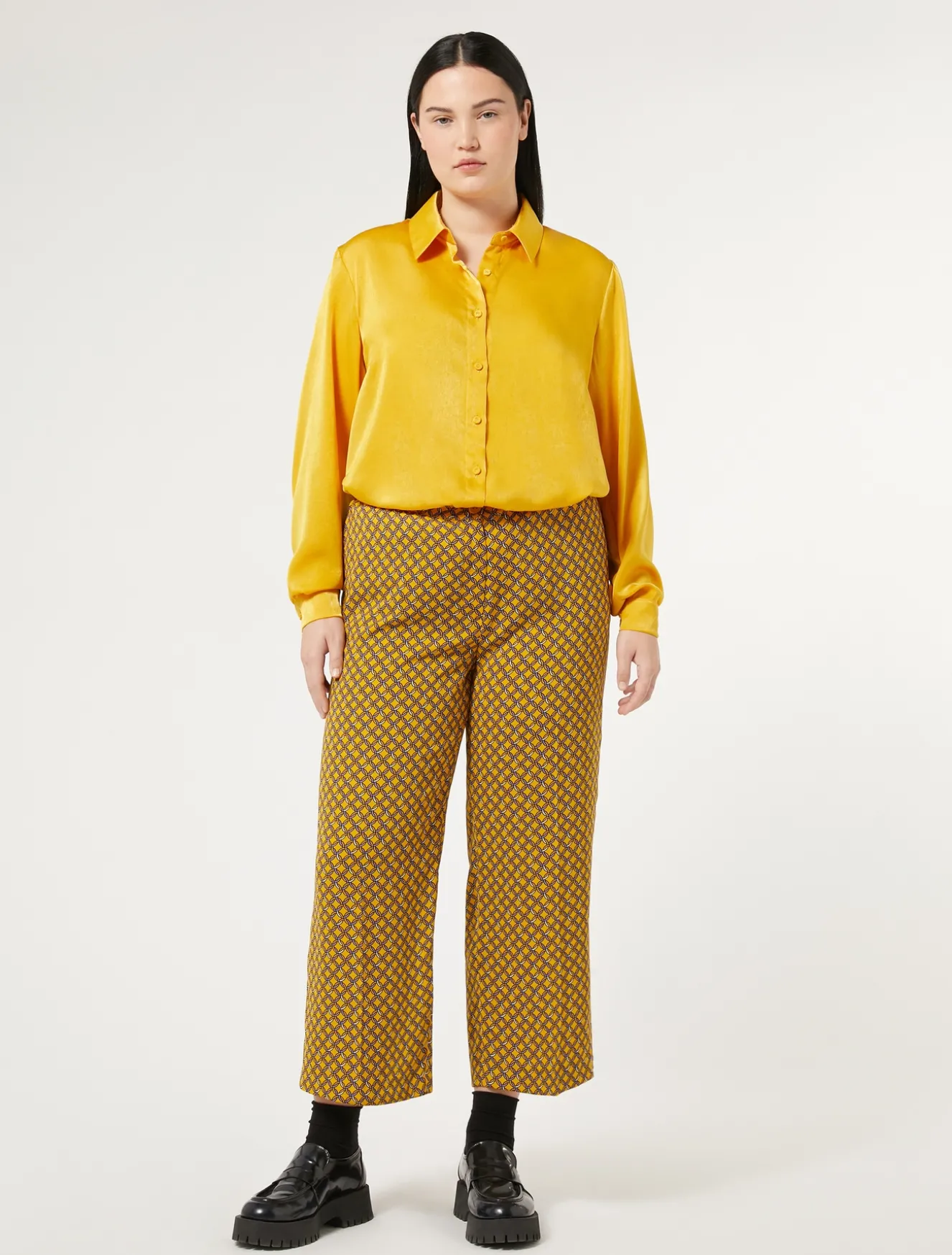 Tagli distintivi per i pantaloni in cady con tasche sui fianchi e chiusura con zip e bottone. La vita con elastico sul retro rende il capo un must di stile e di comfort.Il capo fa parte della collezione Persona by Marina Rinaldi.