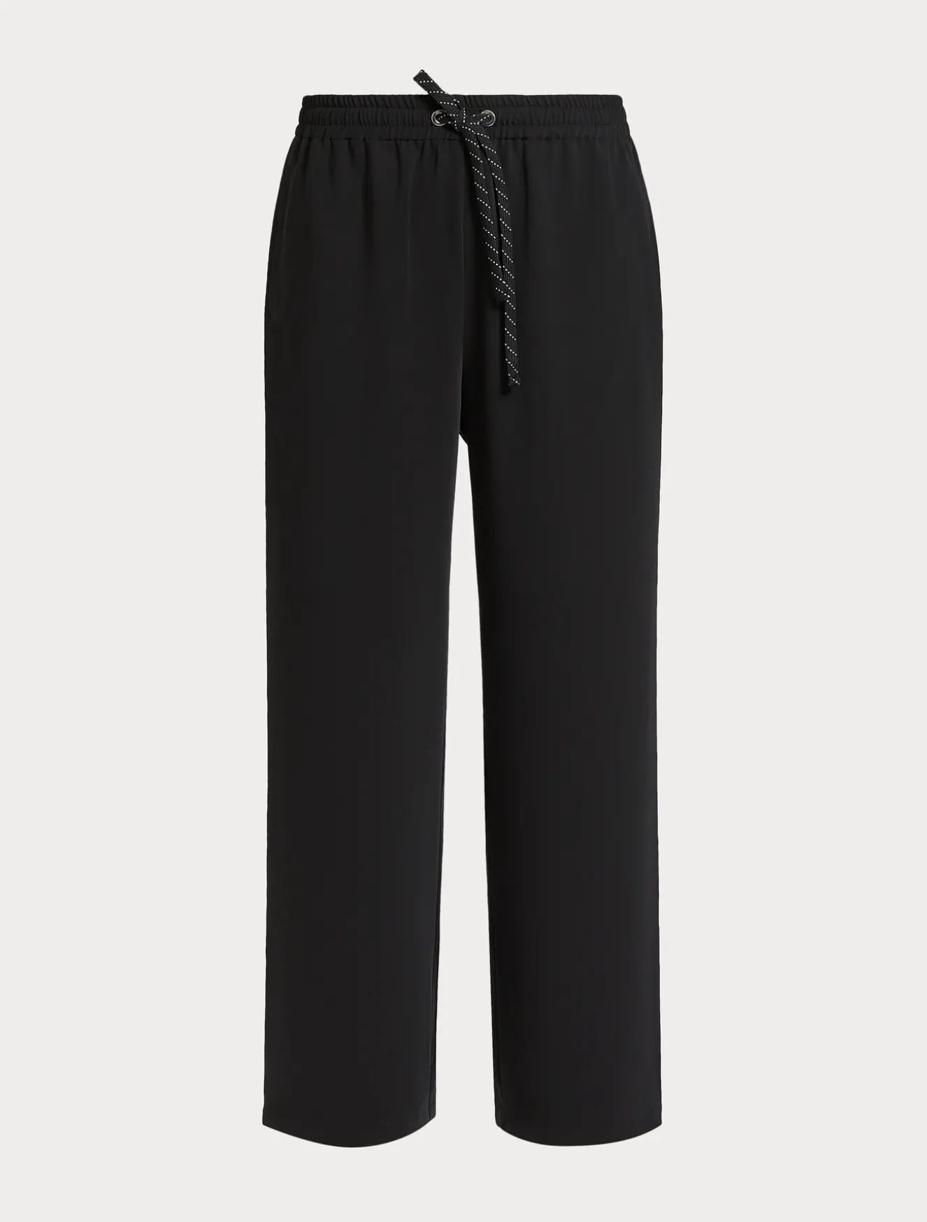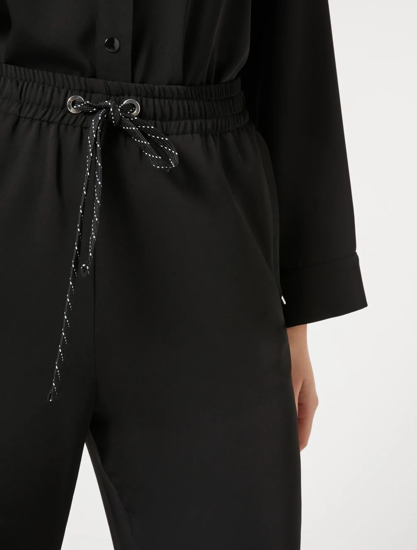 Ispirazione jogging per i pantaloni in cady, un tessuto fluido, di facile manutenzione e anti-imperfezioni. Un modello attuale che puoi abbinare alla casacca in coordinato.Il capo fa parte della collezione Voyage.