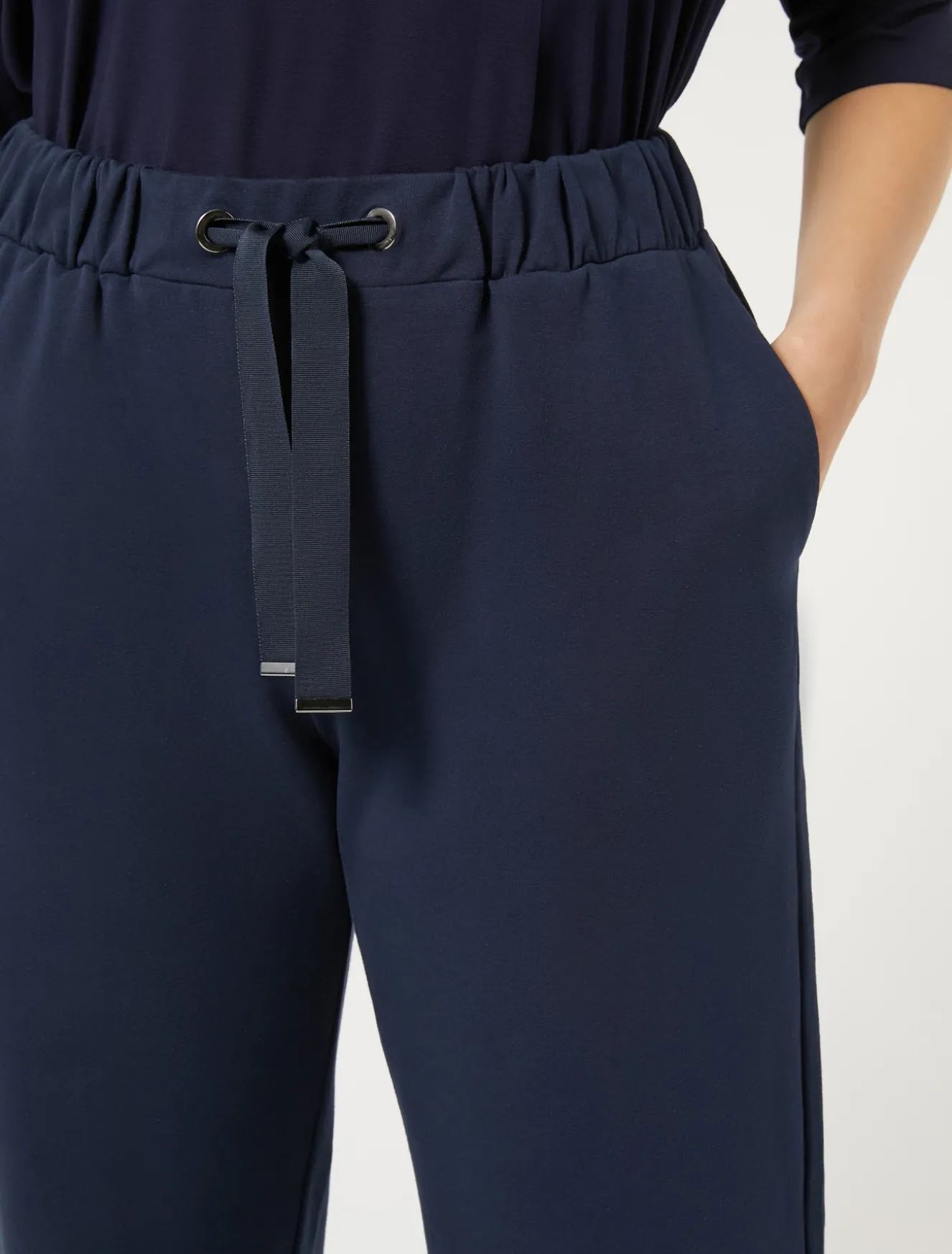 Indispensabili dalla palestra allo stile homewear, i pantaloni in felpa di cotone stretch hanno elastico in vita con coulisse e sono versatili anche per il mix and match.L’accessorio fa parte della collezione Persona by Marina Rinaldi.